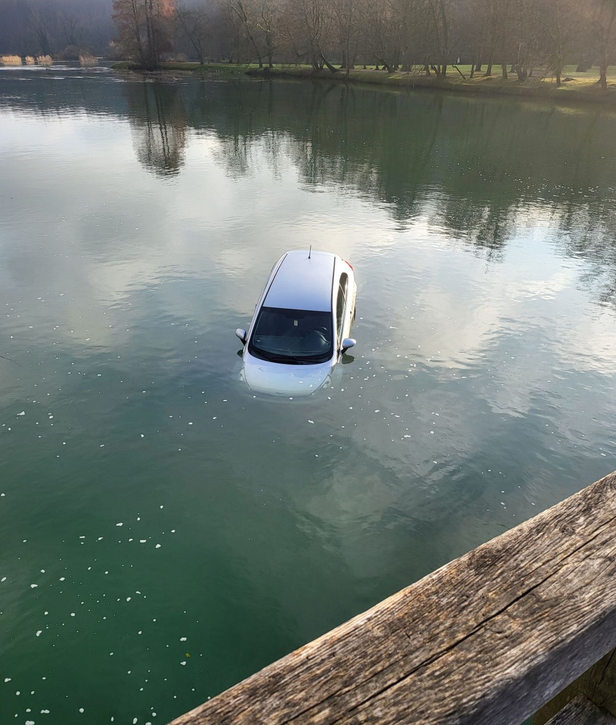 Še preden sta dojeli, da je to njun avto, so mimoidoči poklicali policijo in gasilce, ki so že na kraju dogodka in se trudijo, da bi avto čim prej potegnili na suho.