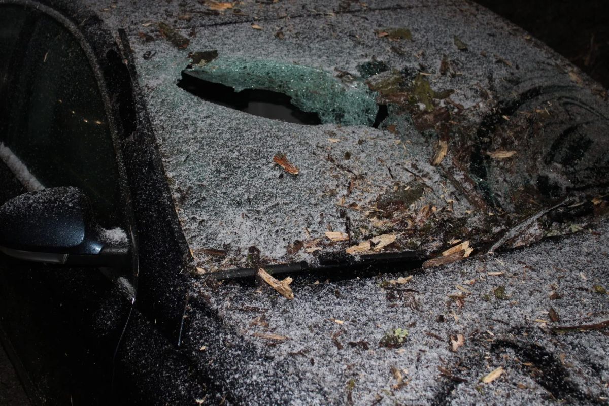 FOTO: Drevo padlo na avto in predrlo vetrobransko steklo