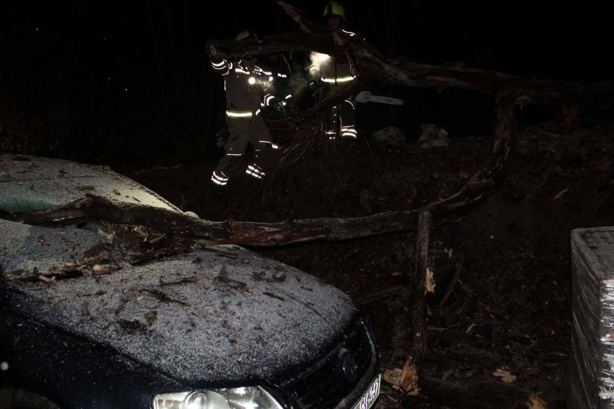 Preko ReCO Brežice so krške policne gasilce včeraj ob 5.49 uri obvestili o padcu drevesa na vozilo v Venišah. Ob prihodu na kraj dogodka so ugotovili, da je drevo padlo čez cestišče na parkirano osebno vozilo in ga poškodovalo. V vozilu ni bilo oseb, prav tako ni bil nihče poškodovan.