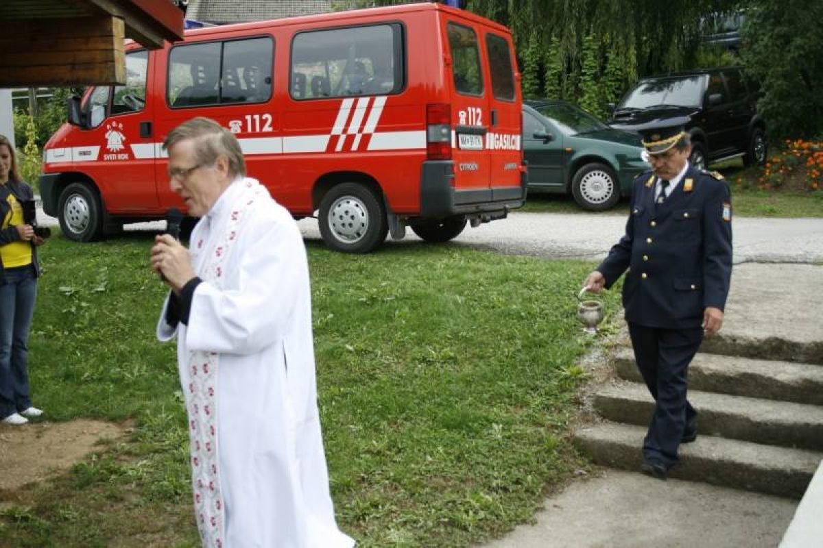 Kombi je blagoslovil tržiški župnik Slavko Kimovec, ki se po nedavni prometni nesreči zaradi skrhanega zdravja te dni seli na nekoliko manj zahtevno delovno mesto v trebanjski župniji. Na slovesnosti je zapel moški pevski zbor KUD Emila Adamiča iz Mokronoga pod taktirko Staneta Pečka.