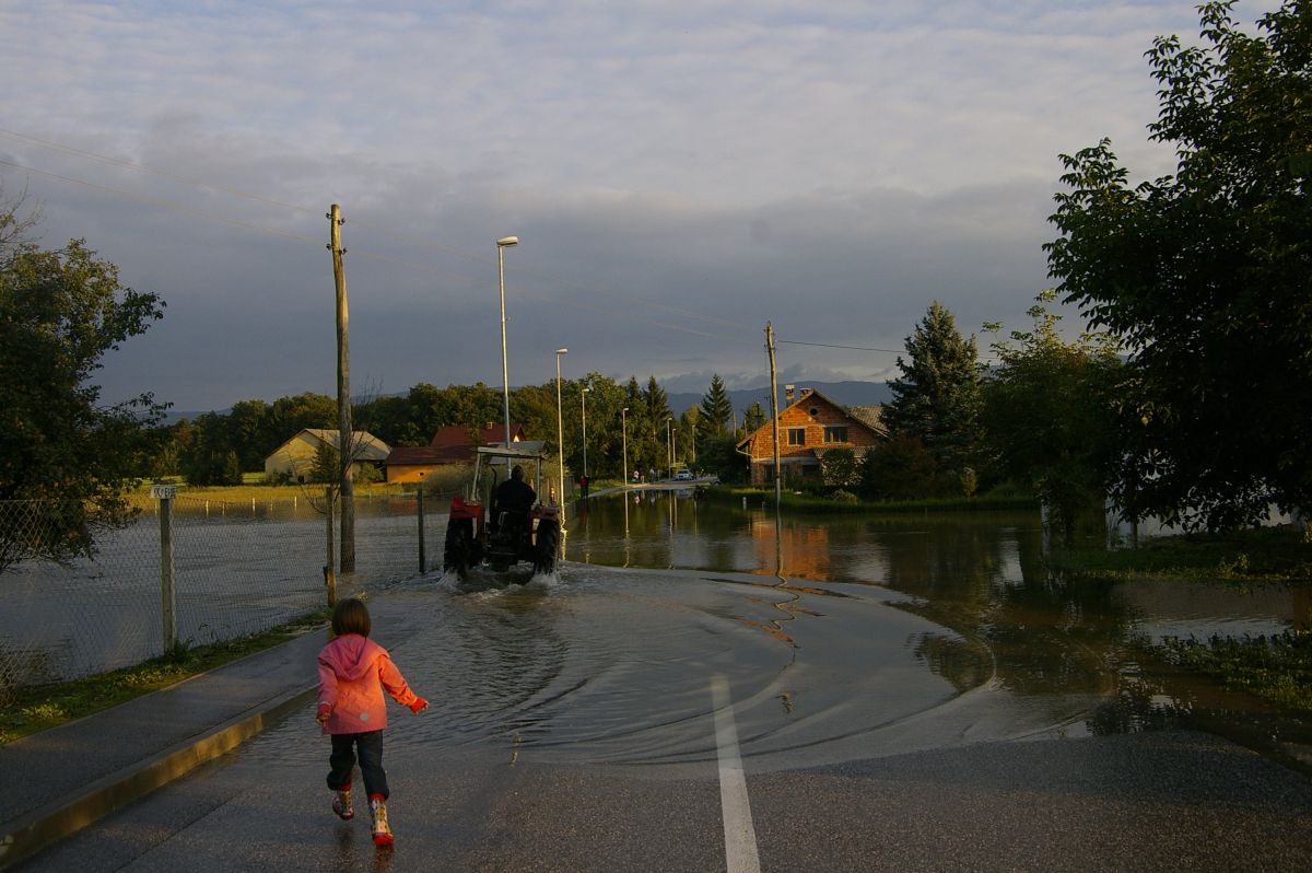 Reševalci se na šentjernejskem polju skušajo prebiti do poplavljencev