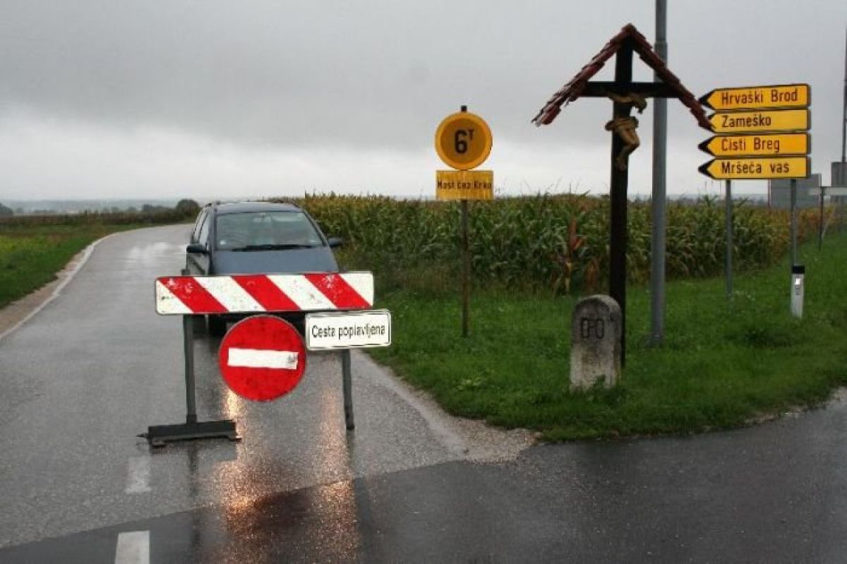 Reka Lahinja je včeraj že zjutraj zalila del ceste na relaciji Podlog―Brdarci v občini Črnomelj. Delavci Cestnega podjetja Črnomelj so postavili zaporo ceste in uredili obvoz. Voda je zalila tudi cesto na relaciji Drežnik―Nova Lipa, urejen je obvoz.