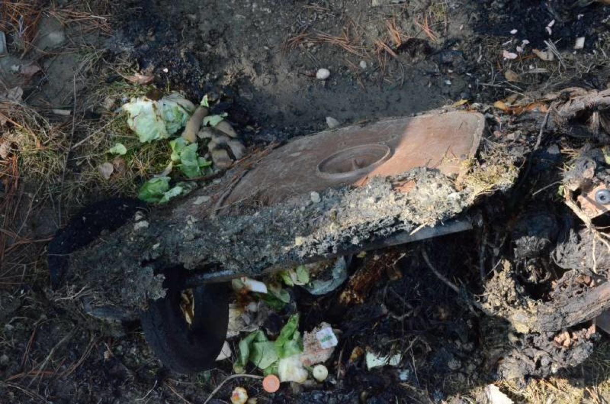 Od posode, v katero je Marija odložila okoli hiše nabrane bio odpadke seveda po požaru ni ostalo skoraj nič. Po ulici se je razširil zadušljiv in zdravju škodljivi smrad po plastiki.