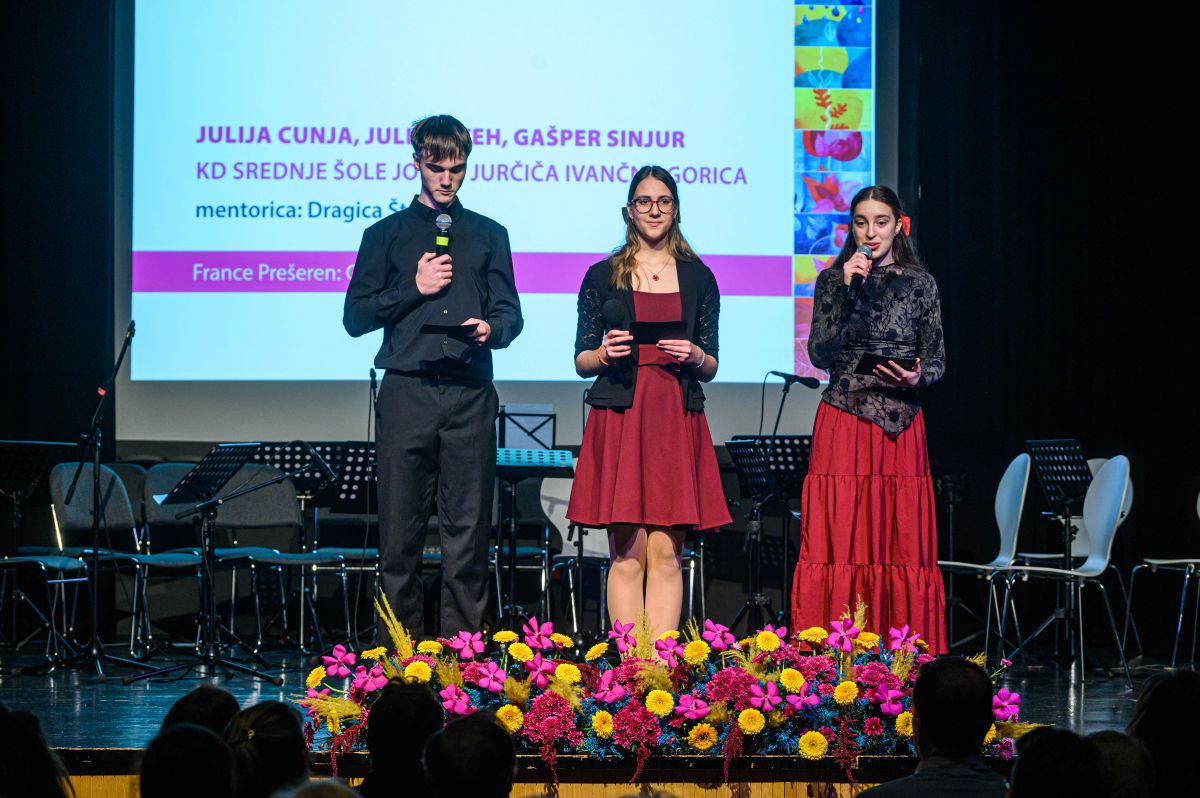 Slavnostna govornica, ambasadorka kulture Občine Ivančna Gorica Dragica Šteh, se je ob verzih Prešernove gazele vprašala, kaj lahko spodbudi semena sedanjosti, da bodo vzkalila in v prihodnosti obrodila sadove. Omenila je pomembne obletnice, ki se jih spominjamo v letu 2026, poleg Kosovelovega leta med drugim tudi 160-letnice prvega slovenskega romana Deseti brat ter 120-letnice rojstva filozofa in rodoljuba Antona Trstenjaka, ki mu je prav tako posvečeno letošnje leto. »V Prešernovem in Jurčičevem času, v prejšnjem stoletju in danes se torej pojavljajo ista vprašanja o smislu življenja, o vzrokih in posledicah in o vsem, kar predstavlja semena upanja za prihodnost.«