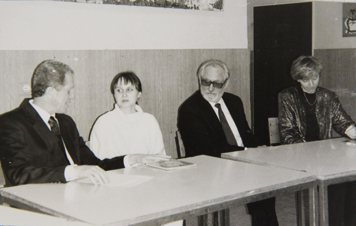 Porumenela fotografija: S tremi literati tedanji ravnatelj Toni Gašperič