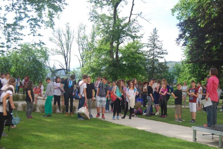 Približno 150 mladih in 30 odraslih smo z nasmehom sprejeli gostitelji - učenci izbirnega predmeta turistična vzgoja z učiteljico Vesno Butkovič. Za njihove želodčke smo poskrbeli učenci izbirnega predmeta sodobna priprava hrane z učiteljico Kristino Prijatelj in kuharicami naše šole, grajsko dvorišče in park okrog gradu smo prostorsko opremili učenci likovnega snovanja 3 z učiteljico Janjo Flisek Balog, na odru pa smo se predstavili člani gledališkega kluba z učiteljico Jelko Slukan. Sprostili smo se z učenjem skupinskega plesa in ogrevalnimi igricami z umetniki. Na odru smo se drug drugemu predstavili z odlomki predstav, gledališkimi vajami v živo, video posnetki, petjem, igranjem s čarobnimi palicami… Predstavili pa so se tudi nekateri umetniki s koncertno pripovedjo ljudskih pesmi in pripovedi Tri zdrave Marije in en oče naš. To je bil uvod v začetek Sevniškega grajskega poletja.