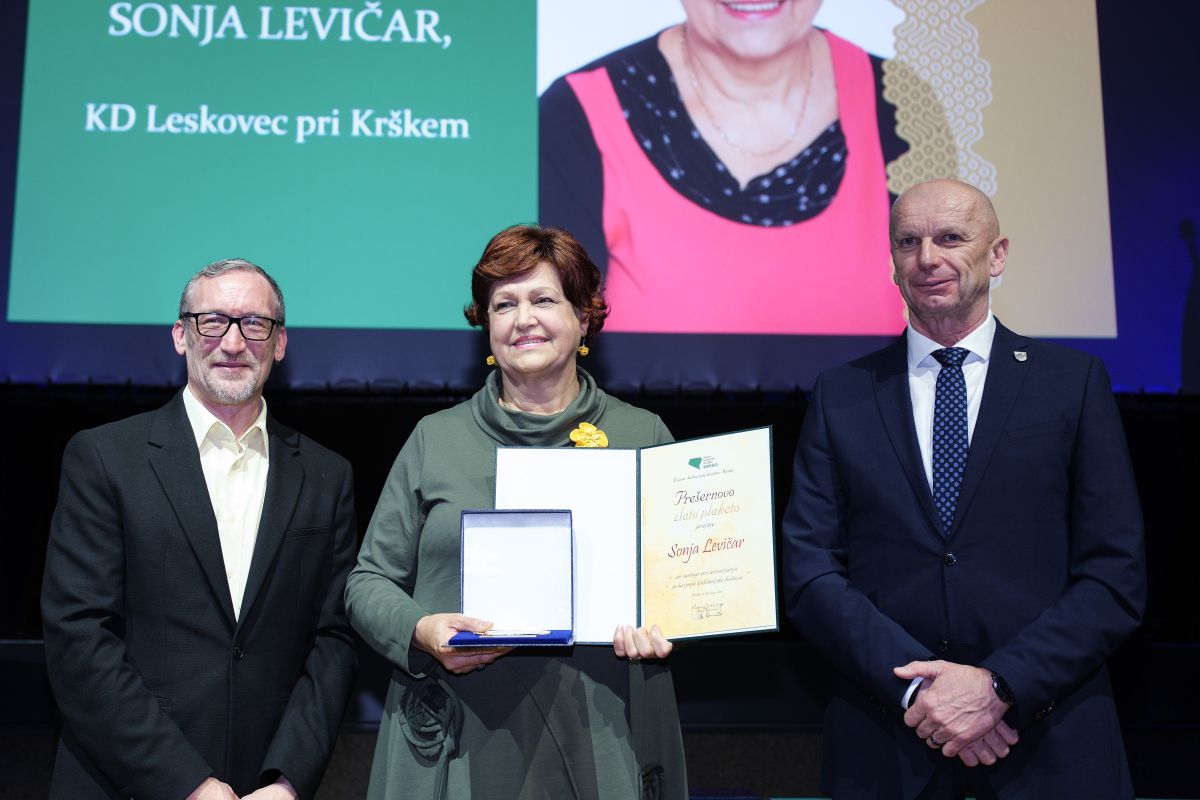 Zlato Prešernovo plaketo sta prejela dolgoletna in nepogrešljiva članica Kulturnega društva Leskovec pri Krškem Sonja Levičar, ki s svojo vsestranskostjo, predanostjo in trajnim prispevkom k ljubiteljski kulturi ter ohranjanju kulturne dediščine bogati kulturno življenje občine in širšega območja, ter Marjan Poznič, dolgoletni in predani član Gledališke skupine Delavsko kulturnega društva Svoboda Senovo, za svoj izjemen prispevek k ljubiteljskemu gledališču, vsestranski igralski opus, dolgoletno ustvarjalno pot in trajen pečat, ki ga je vtisnil gledališkemu življenju Senovega in širšega prostora.