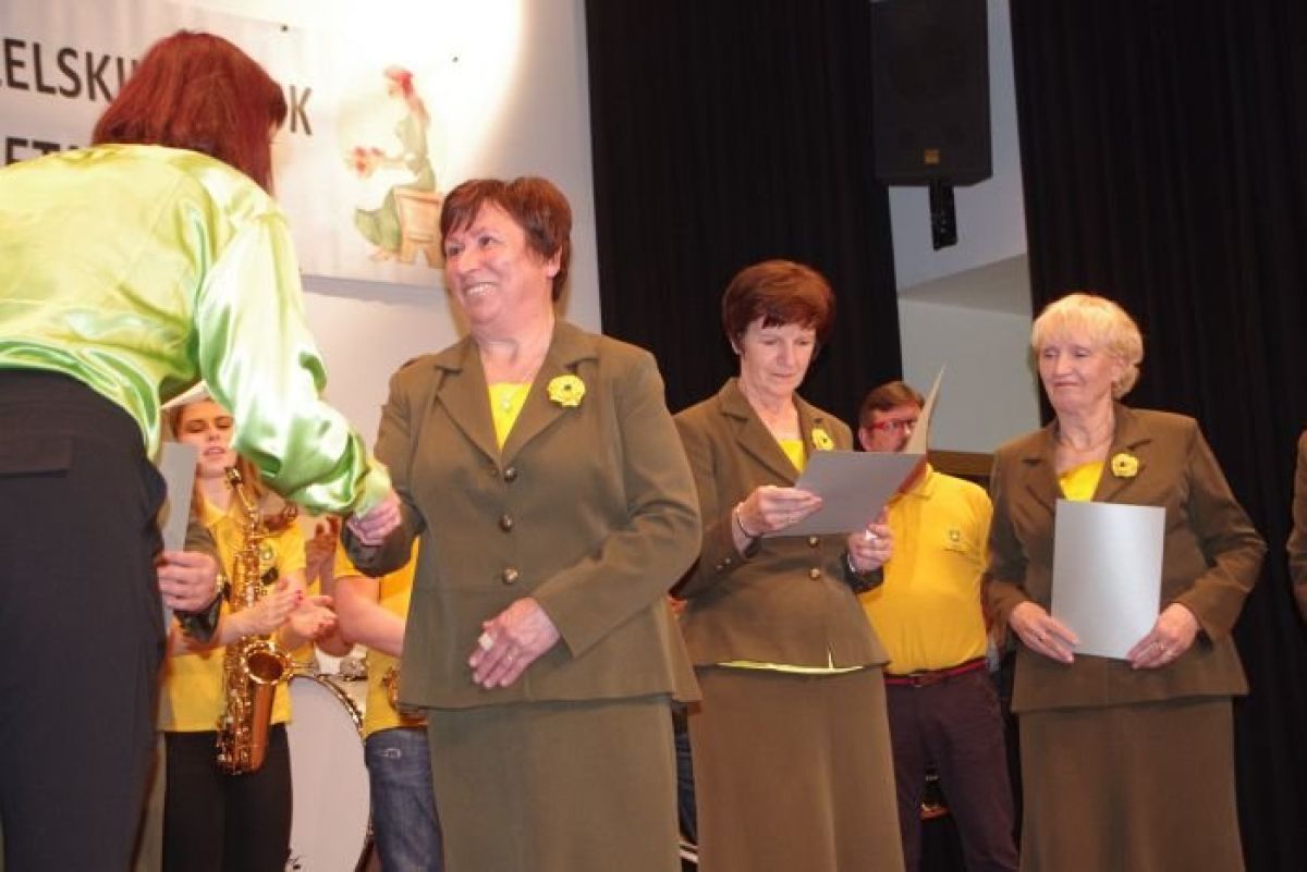 Šmarjetke so prejele številne čestitke pevskih kolegov, lepe želje jim je namenila tudi šmarješka županja Bernardka Krnc. Vodja novomeške izpostave Javnega sklada RS za kulturne dejavnosti Klavdija Kotar in Mija Klobučar, članica sveta iz šmarješke občine, sta pevkam podelili srebrne Maroltove plakete.