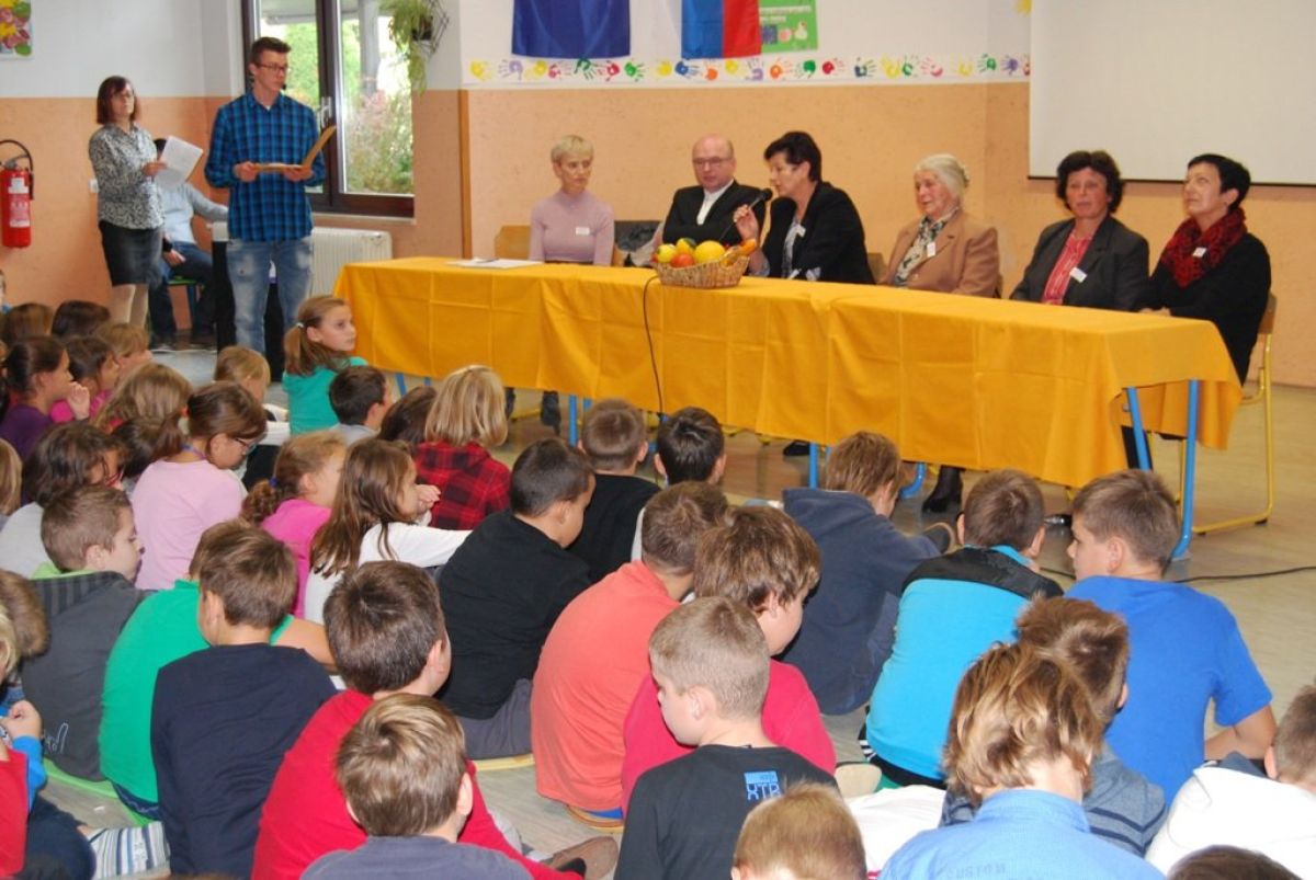 Z današnjim kulturnim dnem smo želeli učencem preko različnih delavnic predstaviti življenje in delo dr. Jožeta Toporišiča in njegov vpliv na slovenski jezik. Na šoli smo gostili Toporišičeve sorodnike: sina Andreja Toporišiča, svakinjo Terezo Toporišič in tri nečakinje Ivano Baškovič, Veroniko Vučajnk in Ano Ogorevc ter direktorico Knjižnice Brežice Teo Bemkoč in sovaščanko Antonijo Bogovič. Gostje so učencem povedali, kakšen je bil dr. Toporišič v svoji mladosti kot oče, kje je služboval, kaj vse je naredil za slovenski jezik in kako si je prizadeval za ohranitev mošanskega narečja. Hkrati so obujali spomine na svojega očeta, strica in jezikoslovca ter učencem povedali zanimive prigode iz njegovega življenja. Učenci od 1. do 3. razreda so risali oz. slikali njegov portret z različnimi tehnikami. Skupina učencev si je šla ogledat tudi njegovo rojstno hišo na Mostec. Po okrogli mizi so gostje odšli v posamezne delavnice, kjer so poglobljeno razpravljali o Toporišiču iz različnih zornih kotov. Na koncu so učenci o tem izdelali plakate, ki bodo razstavljeni na šoli ob slavnostnem preimenovanju.