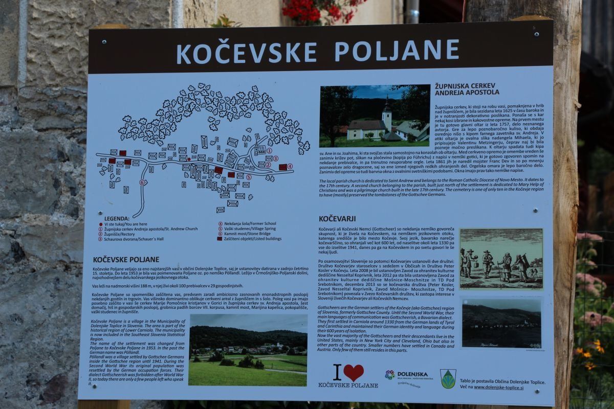 Dnevi Kočevarske kulture, v sklopu katerih so julija v Kočevskih Poljanah na ogled že postavili priložnostno fotografsko razstavo Alenke Peterlin z motivi te vasi in označili vse objekte, ki sodijo v register nepremične kulturne dediščine, bodo potekali vse do prihodnje sobote, 19. septembra, ko jih bodo sklenili z zaključno prireditvijo sredi vasi. Med dogodki naj izpostavimo sobotni slikarski ex-tempore KUD Dolenjske Toplice in fotografski tečaj Janeza Konečnika, projekcijo filma v kočevarščini »Gotscheabar lont – izgubljena kulturna dediščina« in kratek tečaj kočevarščine, ki ga bo izvedla Maridi Tscherne iz Zavoda Mošnice.