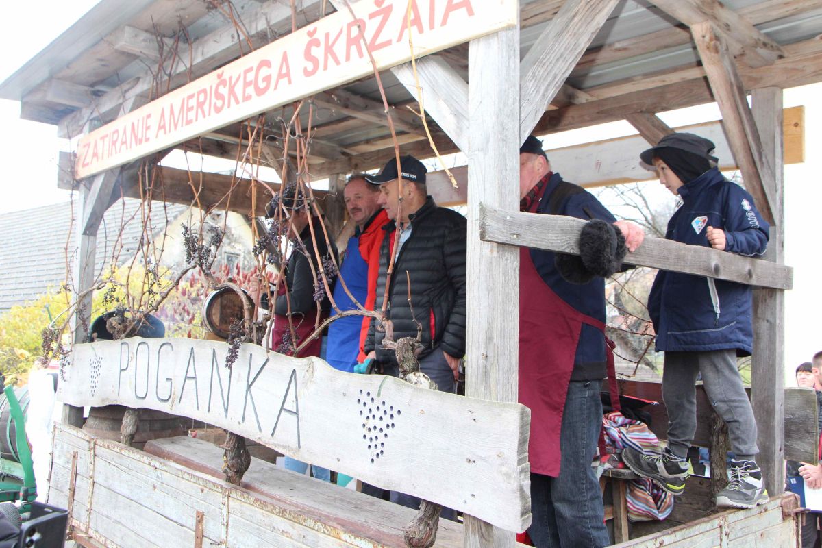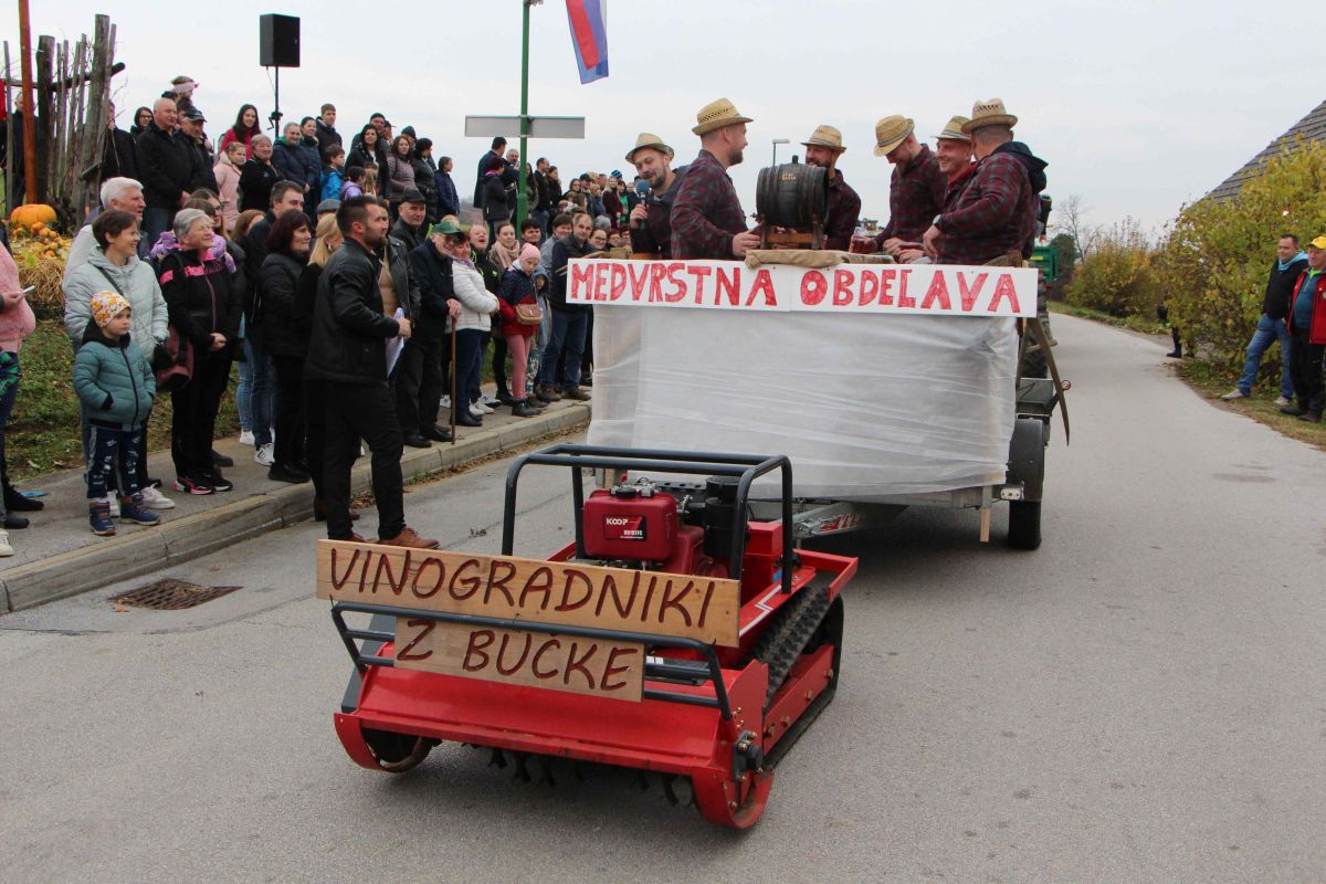 V povorki so vinogradniki iz Impolj predstavili rezatev, vinogradniki z Bučke medvrstno obdelavo, vinogradniki iz Rovišč, s Hudega Brezja in Poganka pa so se borili proti zlati trsni rumenici in ameriškemu škržatku.