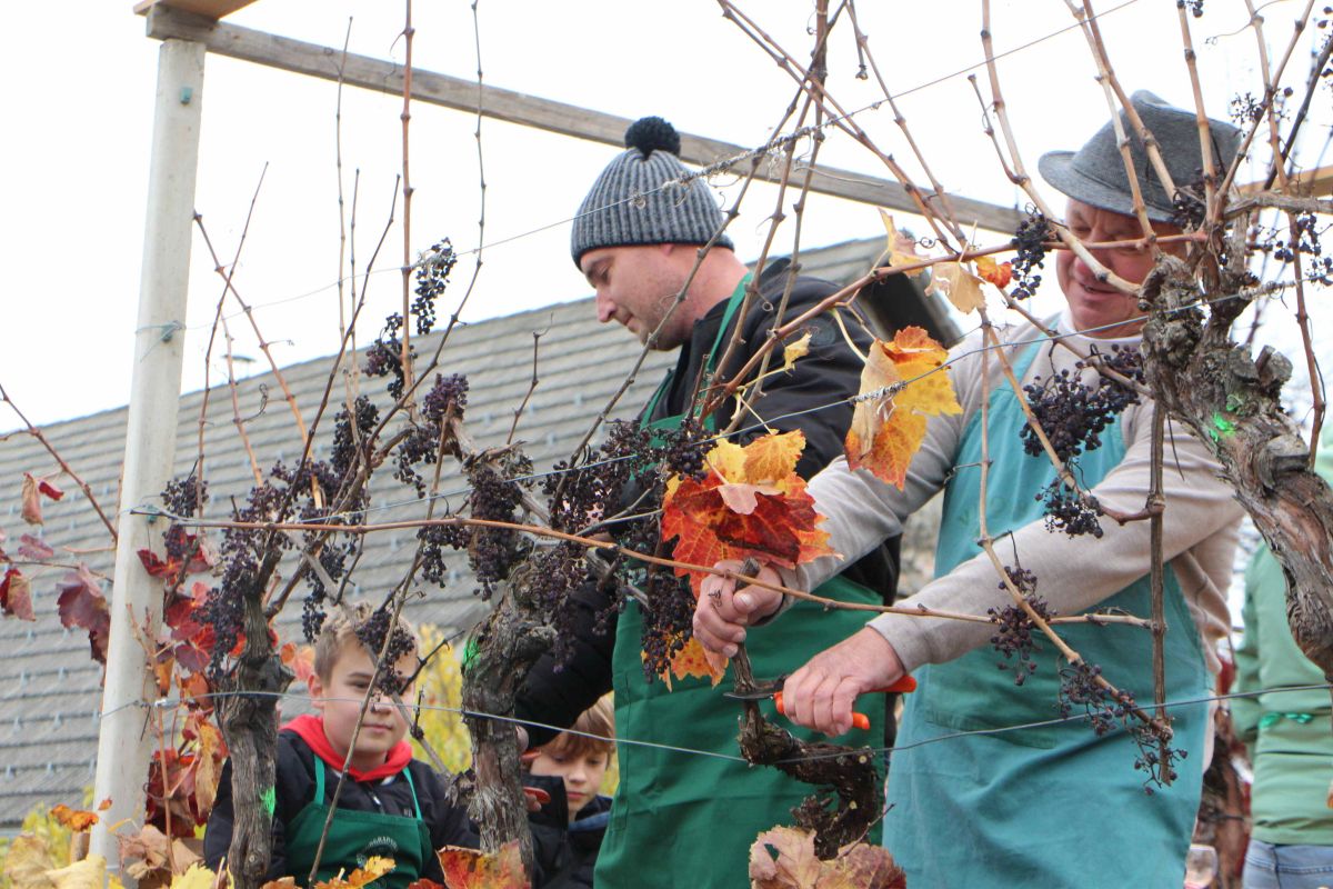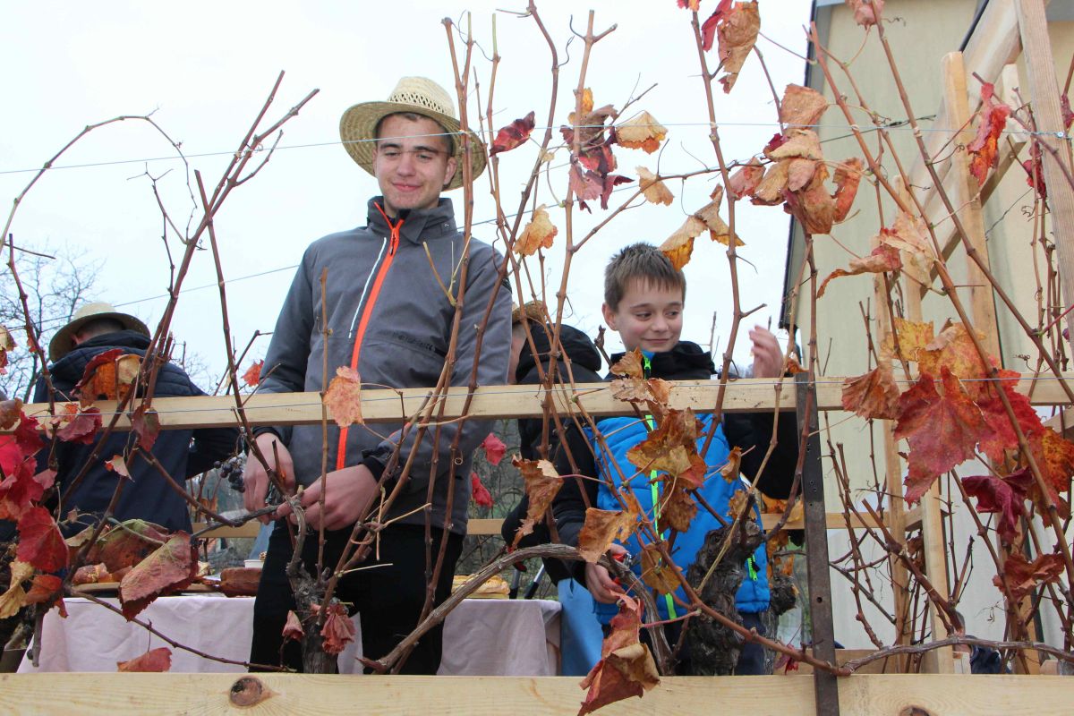 Iz Arta sta se prišla traktorja starodobnika, tamkajšnji vinogradniki so pripeljali 300 let staro prešo, mladi pa prevzeli bolj veseli del vinogradništva.