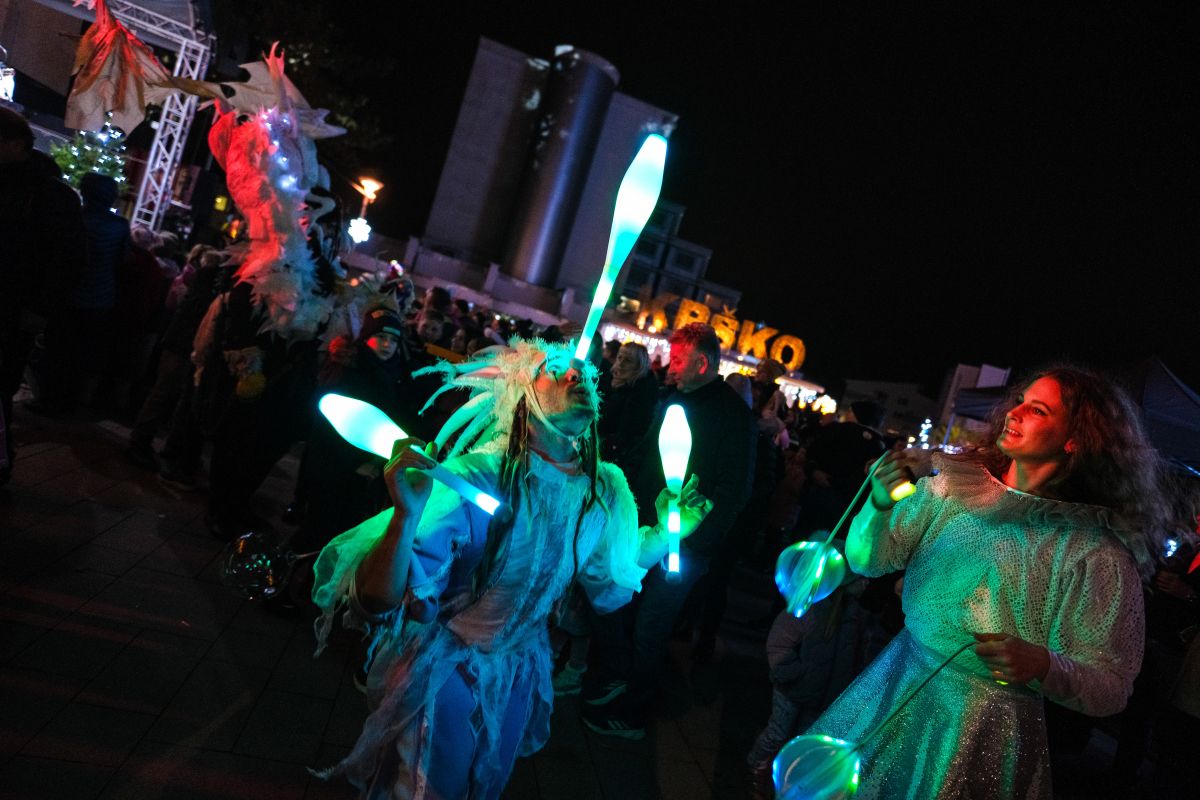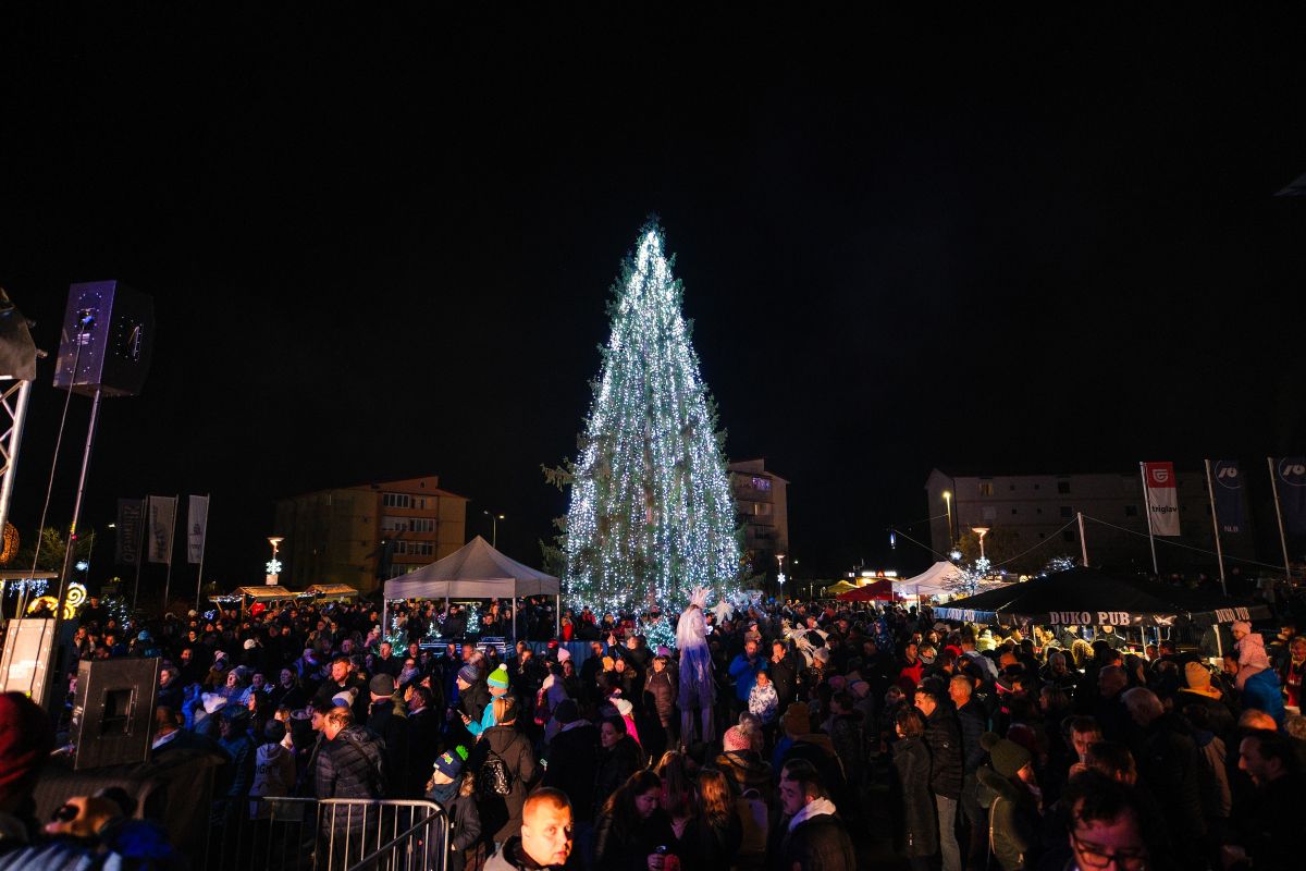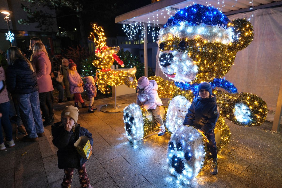 V petek sta župan Janez Kerin in Miklavž v družbi obiskovalcev prižgala praznične luči v Krškem in s tem tudi več kot 18-metrsko smreko, ki krasi Trg Matije Gubca.