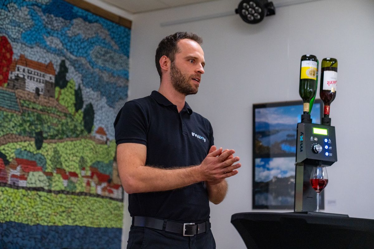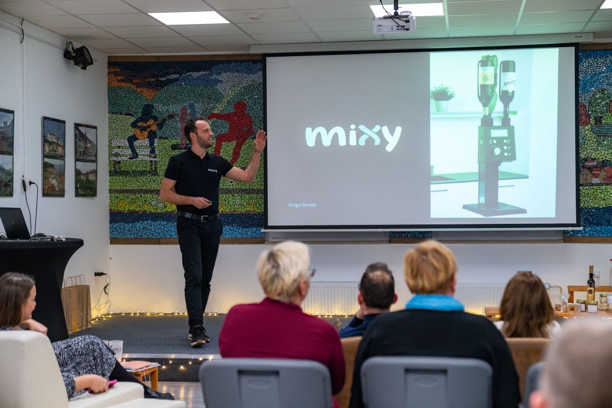 Tretje mesto je pripadlo Gregi Strniši za izdelek Mixy, prenosno napravo za avtomatizirano mešanje pijač. Naprava omogoča izbiro razmerja sestavin, količine in hitro pripravo koktajlov brez nereda – idealna rešitev za dogodke, druženja ali profesionalne uporabnike.