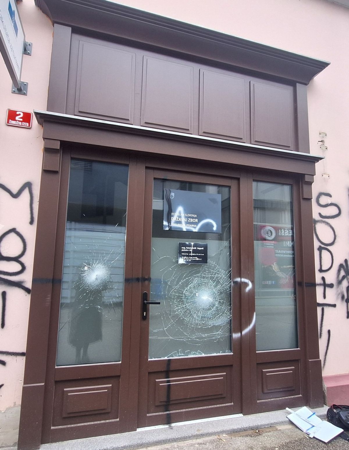 FOTO: Pisarna brežiške Svobode spet tarča vandalizma
