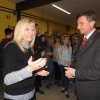 Dijaki so gosta z navdušenjem pričakali – pred vhodom v šolo so ju pozdravili predstavniki strokovnih programov, Tjaša Miketič, 3. E, Nejc Geltar, 3. ST in Žiga Schweiger, 2. OK, v jedilnici šole, kjer je potekal pogovor, pa sta ju nagovorila gimnazijca Valentina Ambrožič, 4. b in Tomaž Kasunič, 4. a. Po uvodnih besedah obeh gostov so sledila vprašanja dijakov.