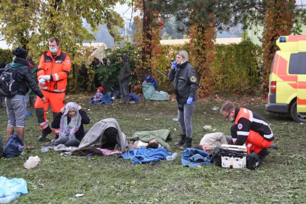 FOTO: Iz Rigonc v spremstvu policije in vojske, v Brežicah kaotično