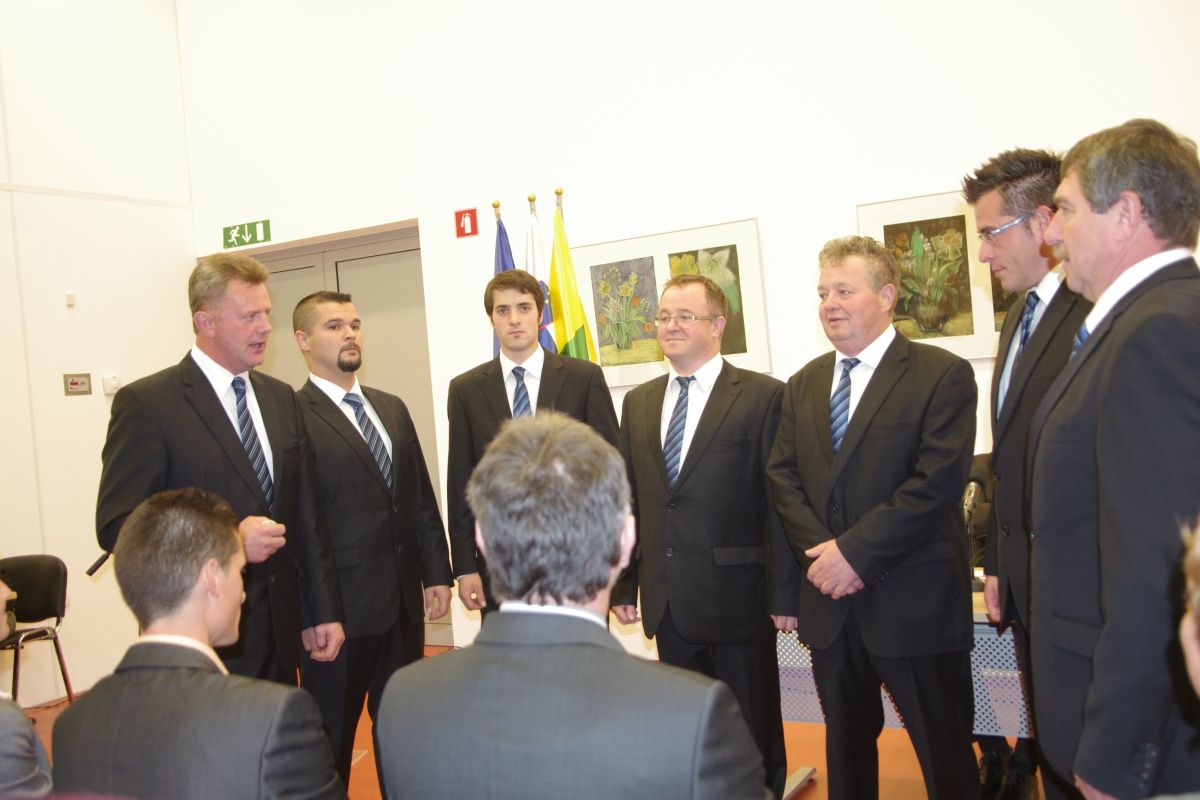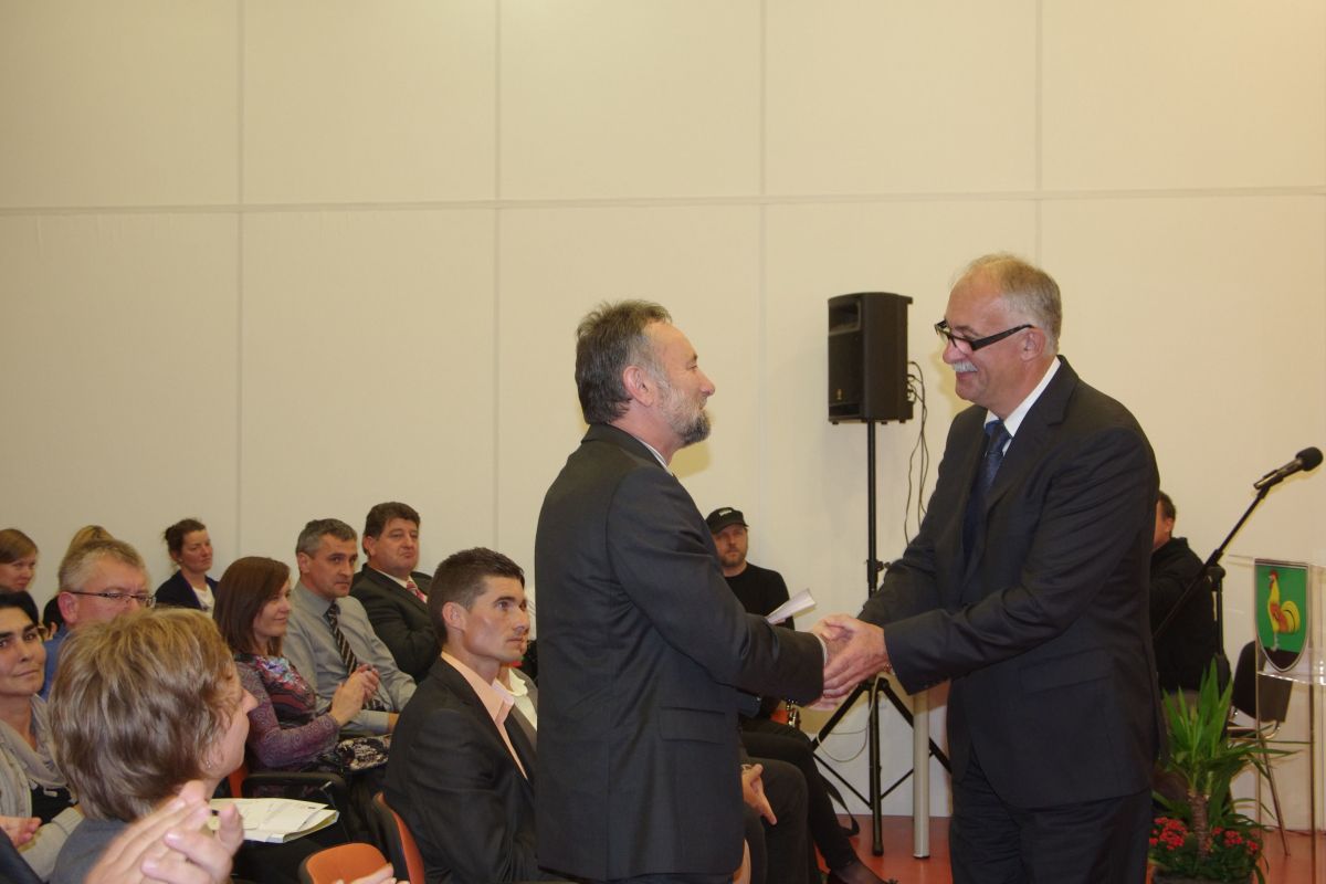 Zbrane je nagovoril tudi dolgoletni župan občine Šentjernej Franc Hudoklin, ki mu je nova občinska ekipa v zahvalo za vse dobro delo poklonila darilo – izročila mu ga je svetnica Karmen Pavlič. Hudoklin je spomnil, da imajo volivci vedno prav in da so se na volitvah odločili za ljudi, za katere menijo, da bodo najbolj poskrbeli za njihovo prihodnost, »kljub temu, da je bilo veliko postorjenega, zlasti na komunalnem in cestnem področju. Vesel sem, da sem prvi župan, ki je vso energijo usmeril v ustanovitev lastne gasilske zveze in postavil temelje civilne zaščite v občini. Z občinsko upravo smo v vseh mandatih uspešno delovali. Imel sem posluh za razvoj kulture in športa, ter do staršev, ki smo jim z odpiranjem novih oddelkov vrtca zagotavljali varstvo otrok.«