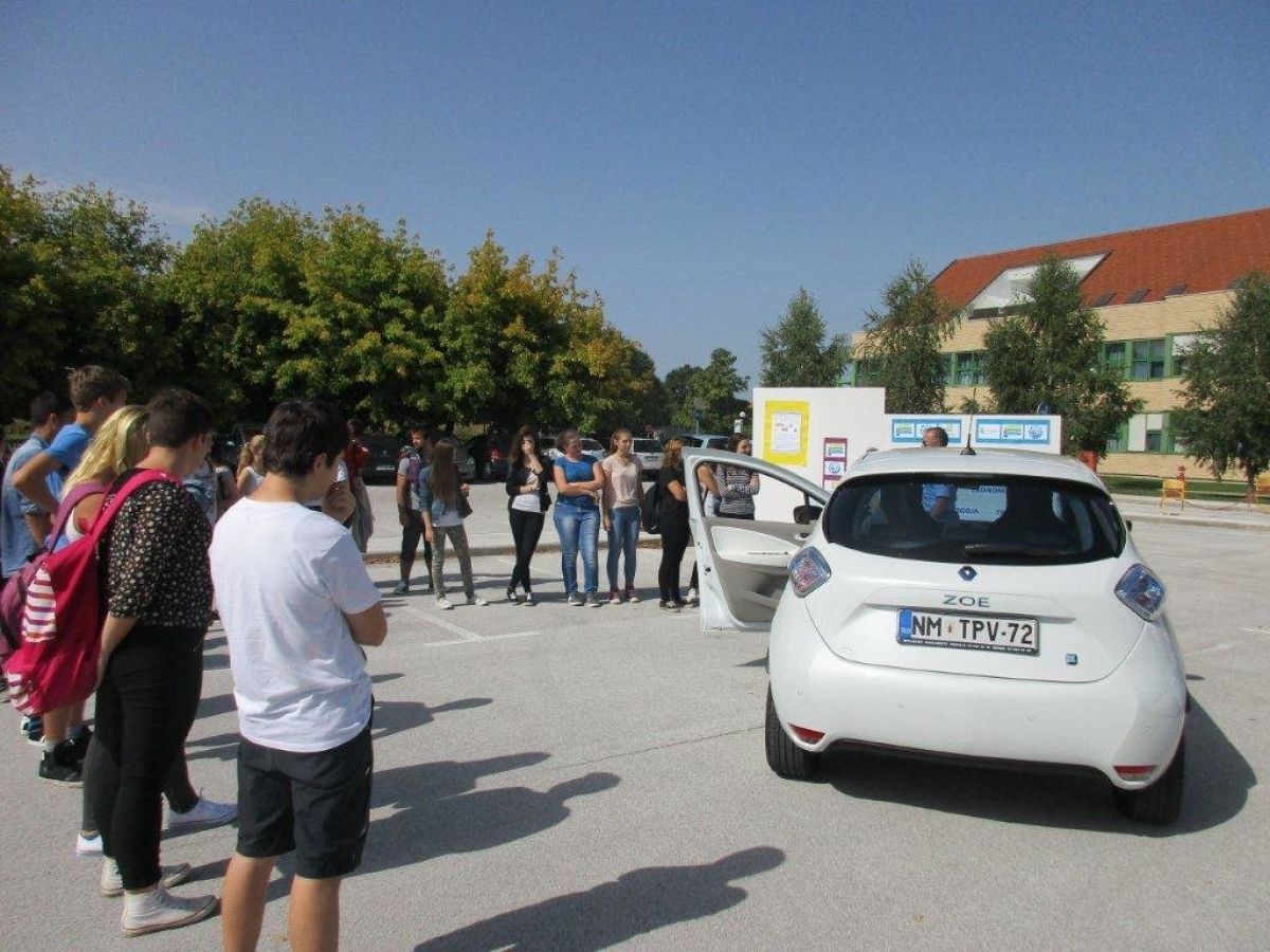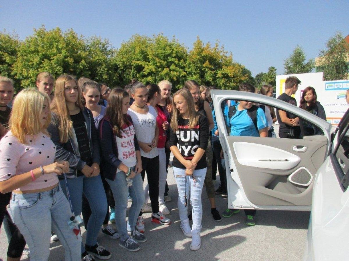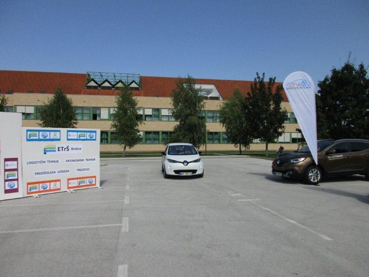 V petek, 18. septembra, so se dijaki in delavci Ekonomske in trgovske šole Brežice na parkirišču pri šoli udeležili predstavitve Renaultovega električnega avtomobila zoe.