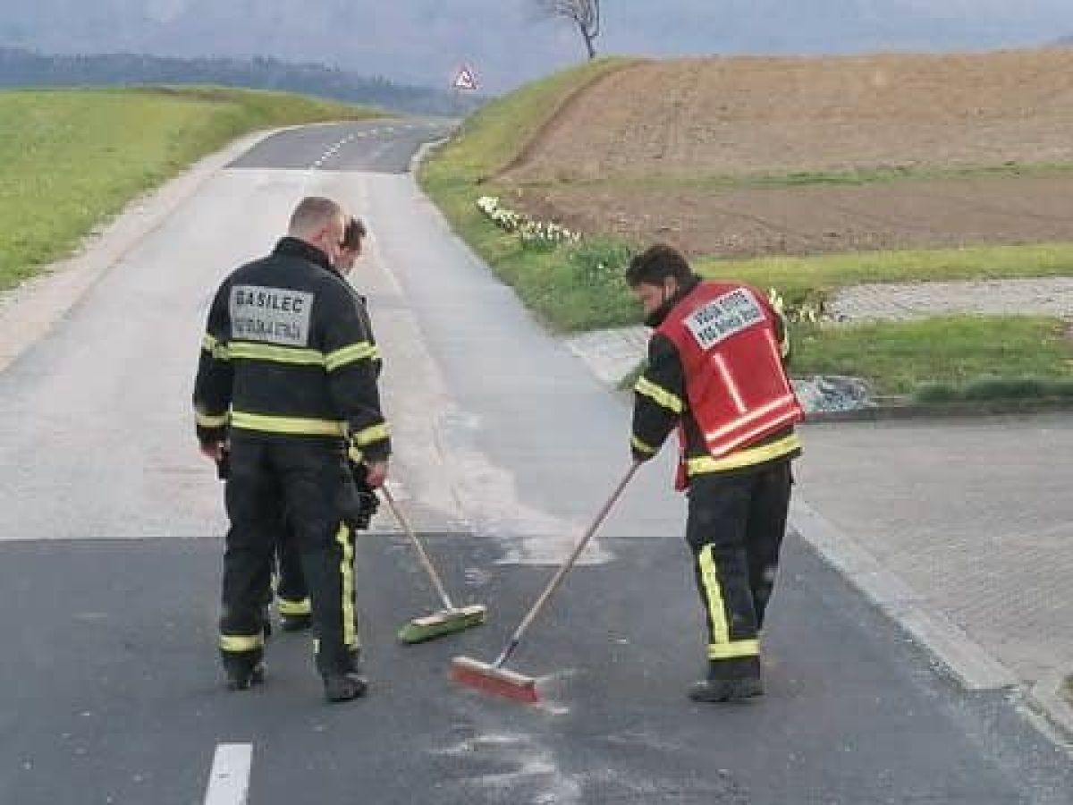 Včeraj ob 18.27 je bilo na relaciji ceste Zalog-Hruševec, občina Straža, razlito motorno olje. Gasilci GRC Novo mesto in PGD Dolenja Straža so očistili oljni madež v dolžini enega kilometra.