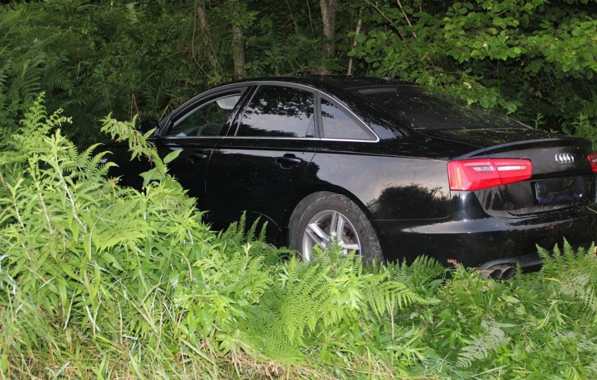 FOTO: Na AC audi prebil ograjo in pristal v grmovju