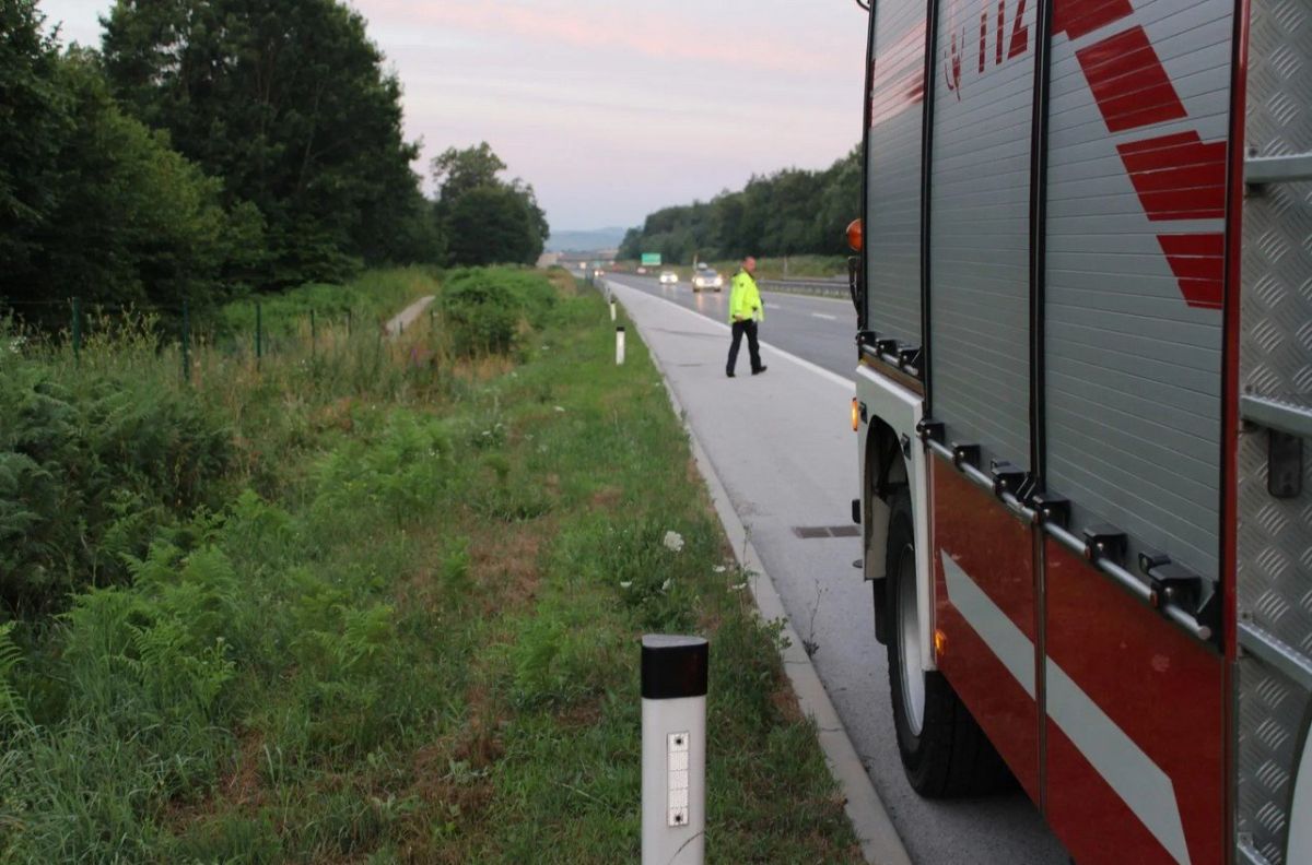 Včeraj ob 4.53 je na AC Smednik–Drnovo, občina Krško, osebno vozilo prebilo varovalno ograjo ter pristalo v grmovju poleg avtoceste. Gasilci PGE Krško so zavarovali kraj dogodka in pregledali udeležence prometne nesreče. Nihče ni bil poškodovan, do iztekanja motornih tekočin ni prišlo.