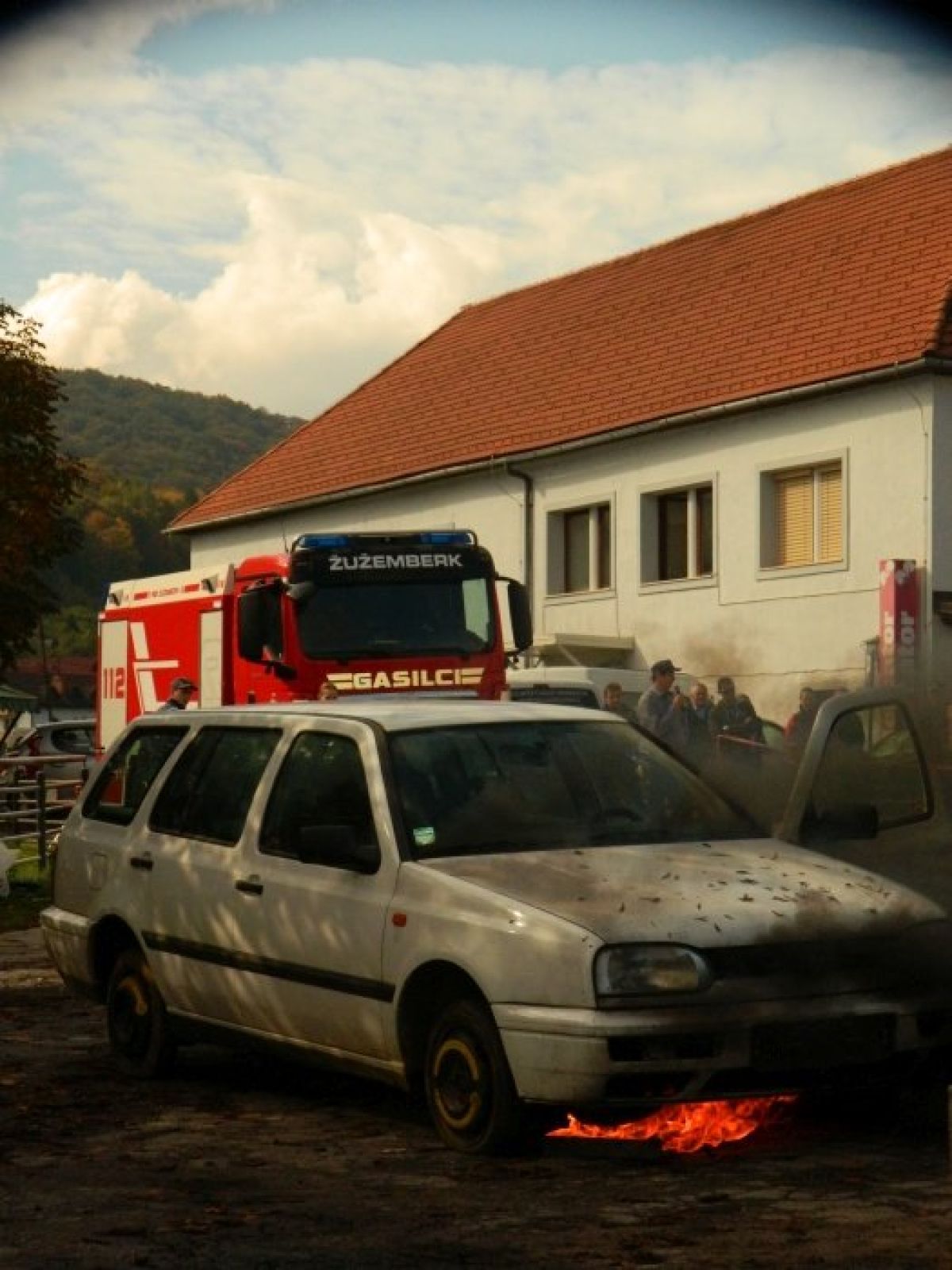 V soboto je bilo ob 13.00 uri izvedeno tehnično reševanje vozil in ponesrečencev v prometni nesreči. Gasilci prostovoljnega gasilskega društva Žužemberk, gasilci GRC Novo mesto in gasilci hrvaškega prostovoljnega društva Belavići so skupaj sodelovali v prometni nesreči dveh udeleženih vozil, na parkirišču pri gradu Žužemberk. Eno od udeleženih vozil je zagorelo, drugo pa je zapeljalo na bankino. Zavarovali so kraj nesreče, oskrbeli ponesrečence in pogasili udeleženo vozilo.