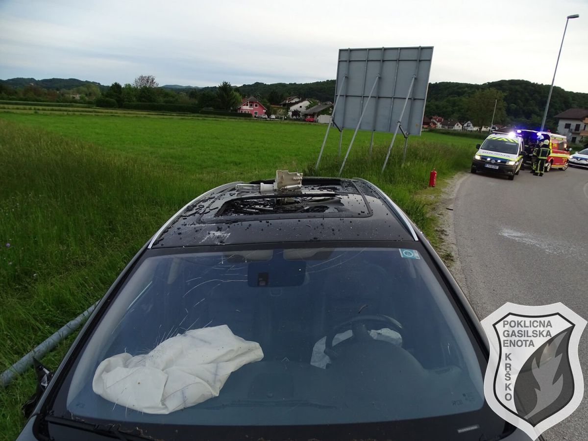 Dne 23.5.2021 ob 13:05 uri smo bili preko ReCO Brežice obveščeni o prometni nesreči osebnega vozila v kraju Senovo. Izvozili smo s hitrim tehničnim vozilom in dvema gasilcema (tehnična reševalca). V vozilu ni bilo poškodovanih oseb. Na kraju nesreče je bilo ugotovljeno, da je voznik osebnega vozila zapeljal iz cestišča in trčil v objekt, pred našim prihodom je zapustil kraj dogodka. Izvedli smo protinaletno in protipožarno zavarovanje, odklop akumulatorja, pregled vozila zaradi morebitnega iztekanja nevarnih tekočin in čiščenje cestišča z absorbentom. V enoto smo se vrnili ob 13:45 uri.