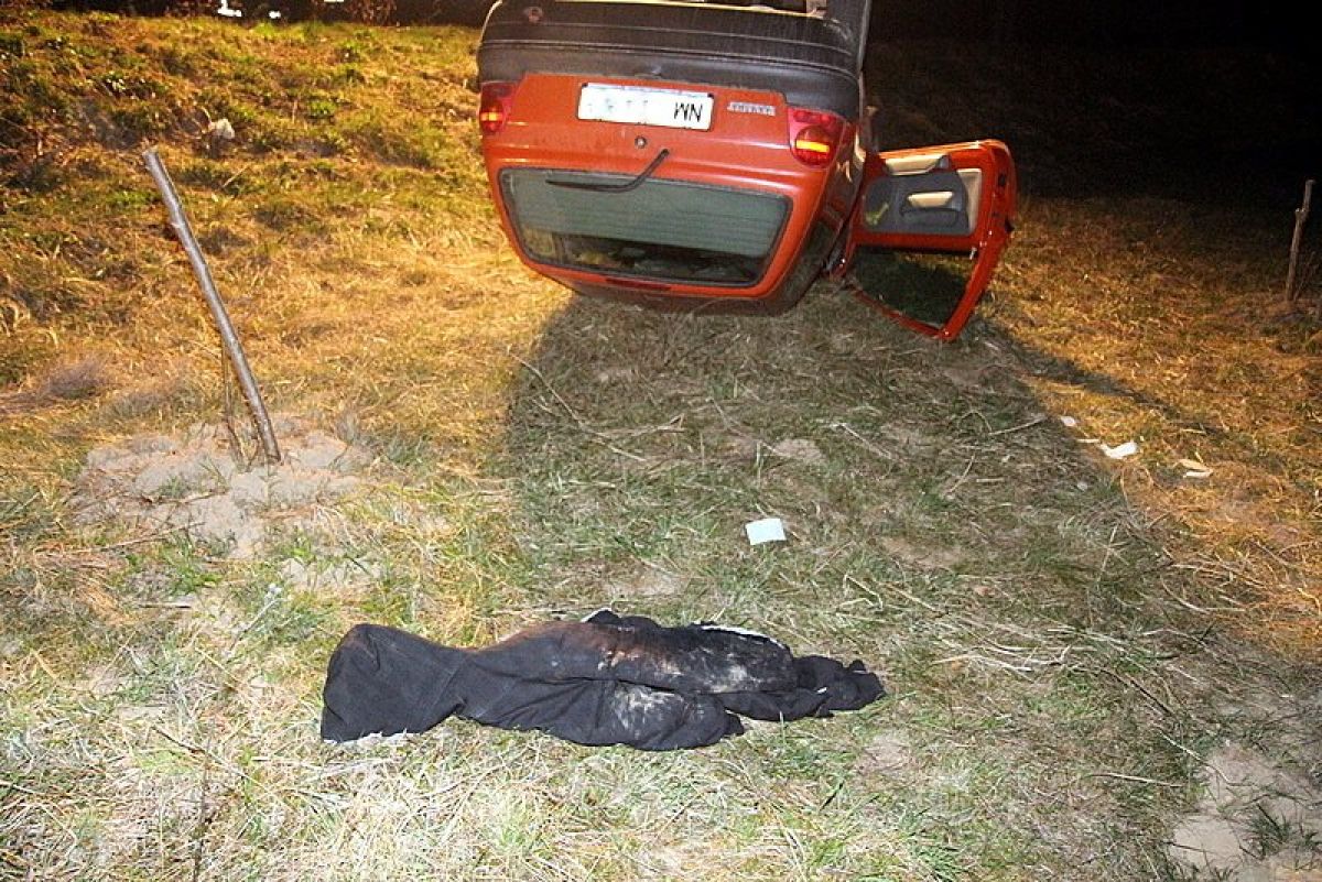 FOTO: Zapeljal na travnik in se prevrnil na streho