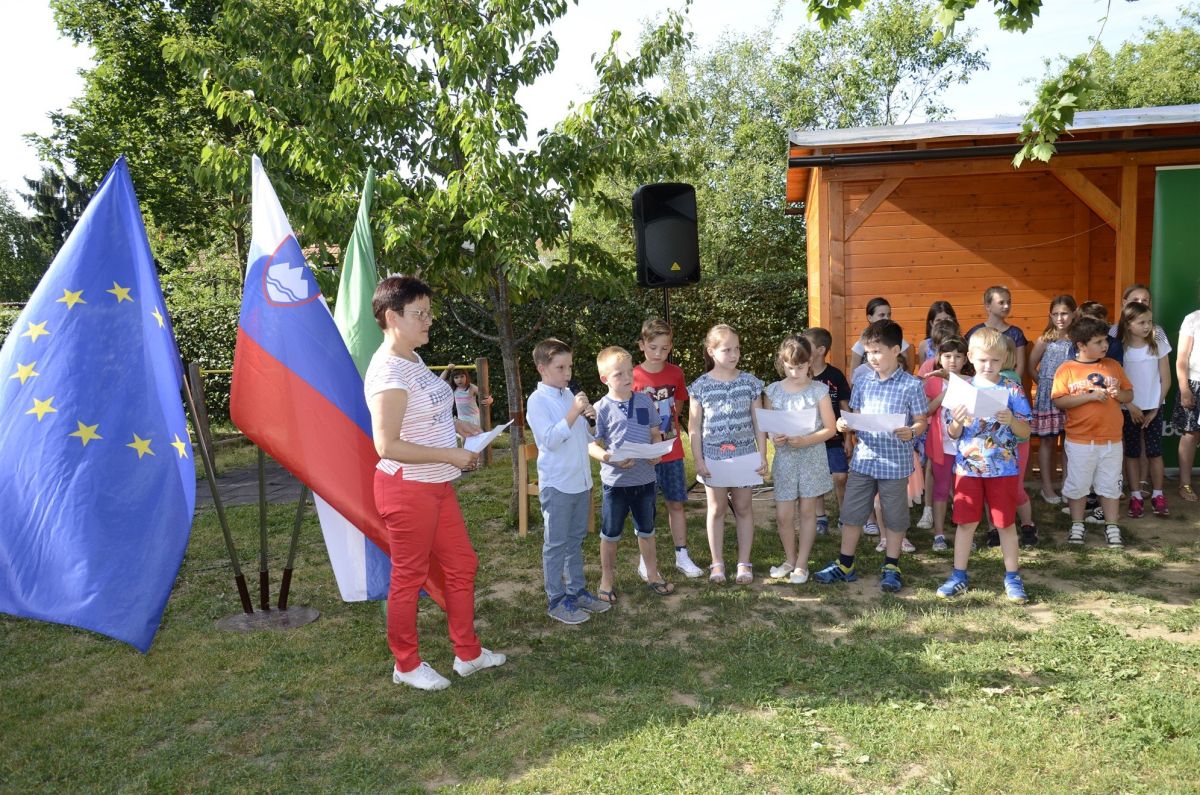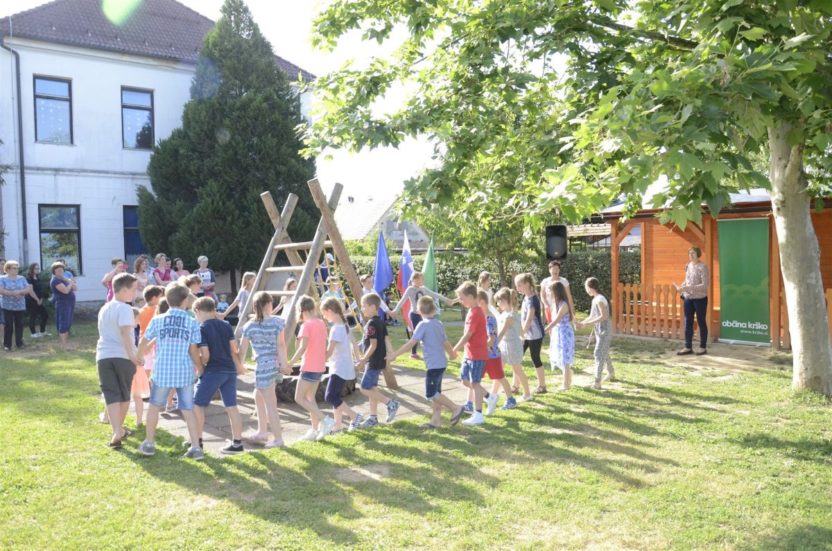 Krožišče so s simbolično vožnjo odprli mladi kolesarji, novo pridobitev pa so s s pesmijo in recitacijo pospremili domači otroci.
