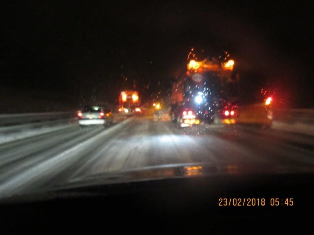 O bolj kritičnih voznih razmerah sicer danes poročajo z Gorenjske, policisti s kranjske uprave pa so podobno opozorili, da naj se vozniki v takih razmerah izogibajo prehitevanju drugih vozil in "slalomu med posipnimi oz. plužnimi službami na avtocestah". Priložili so tudi videoposnetek z gorenjske avtoceste, kjer so včeraj neučakani udeleženci po prehitevalnem pasu serijsko najprej prehitevali eno tako vozilo, potem pa na nedovoljen način po desnem prometnem pasu še drugo posipno vozilo. "S takimi manevri lahko več izgubite kot pridobite," opozarjajo tudi gorenjski policisti.