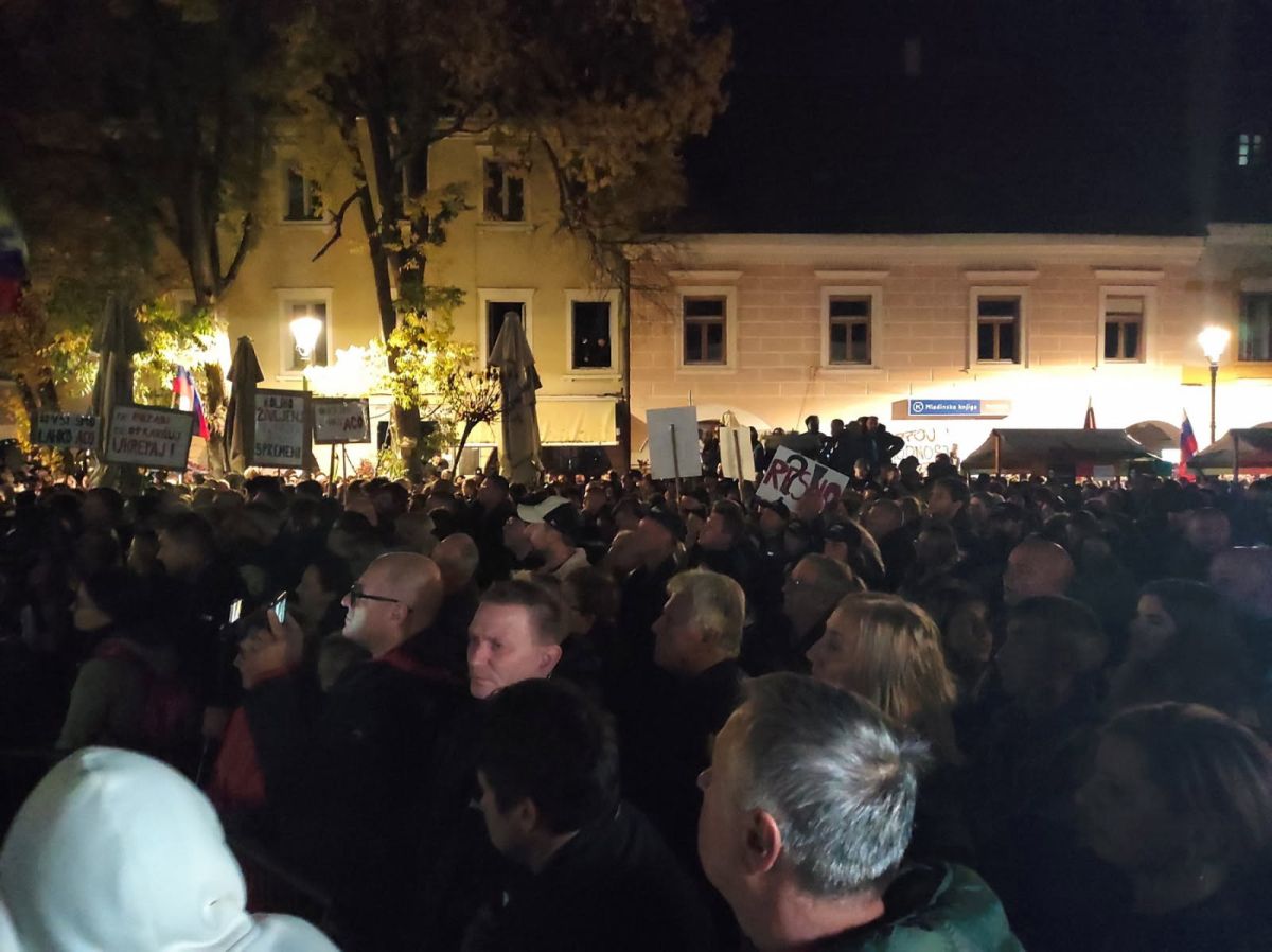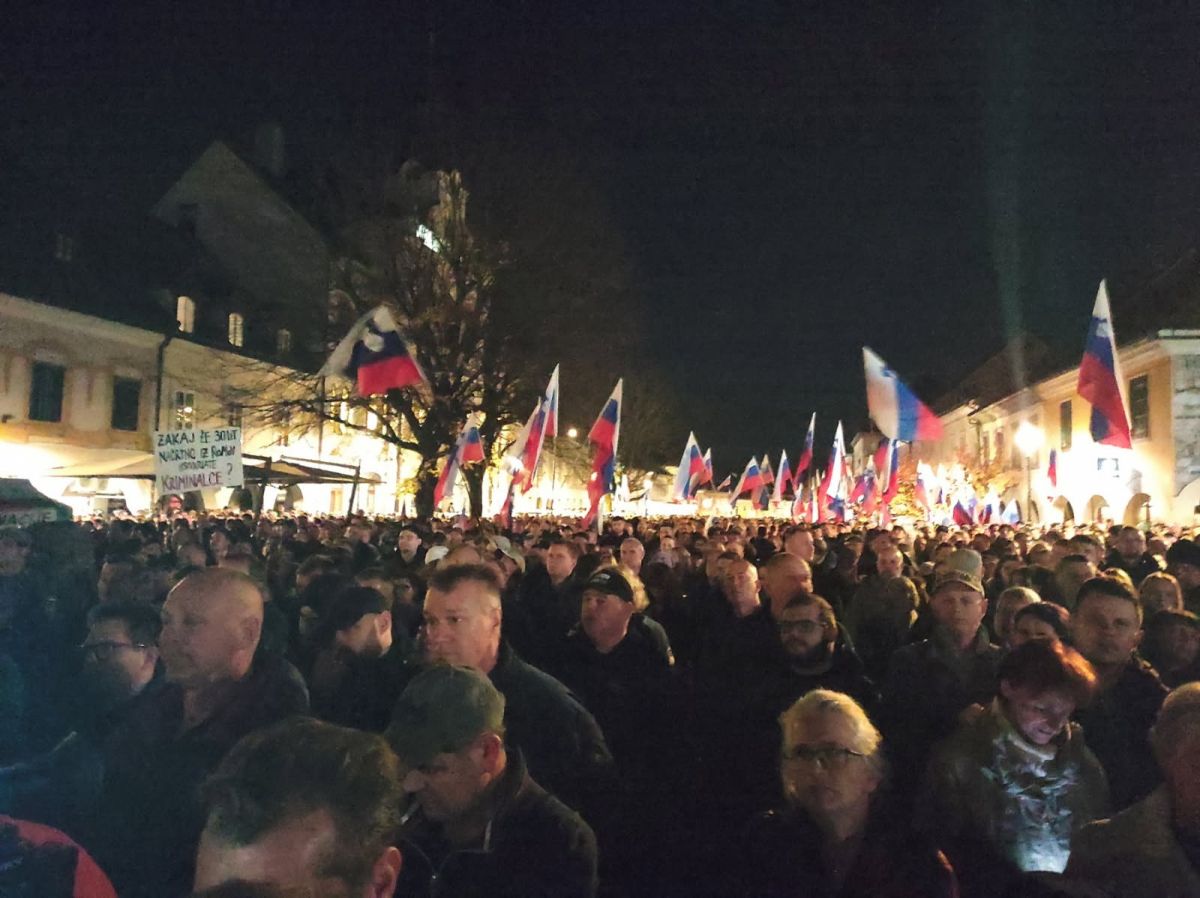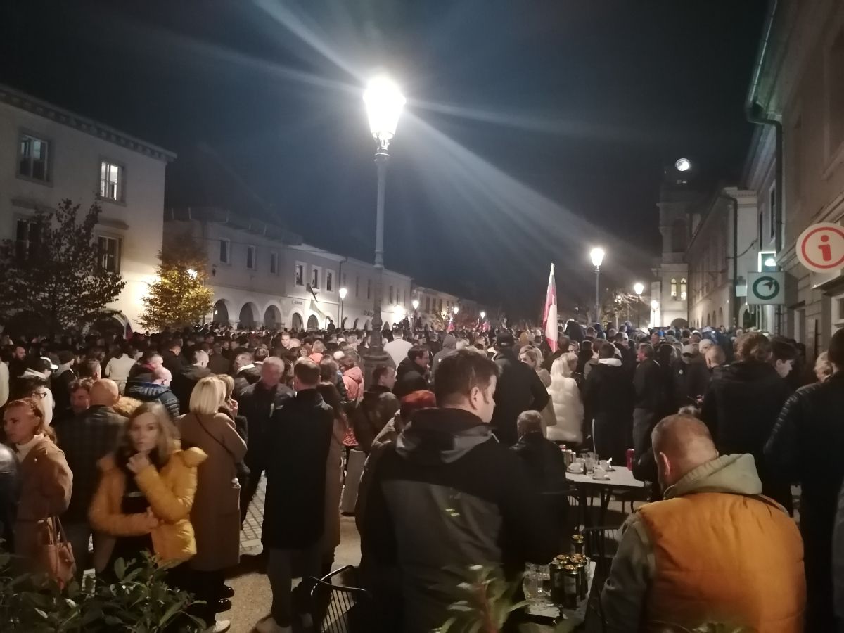 Množica ljudi v središču Novega mesta - vladi žvižgi, županom aplavz