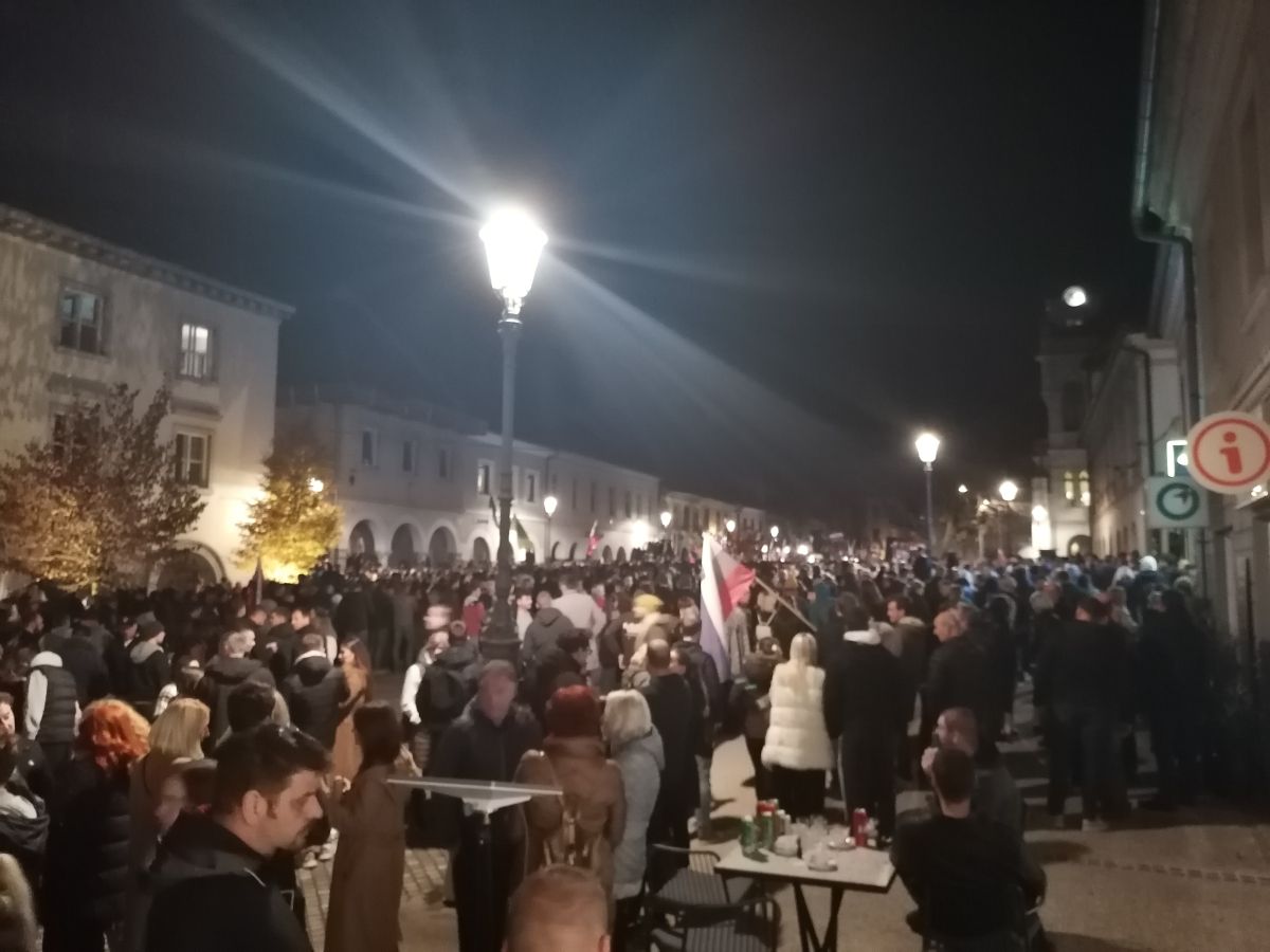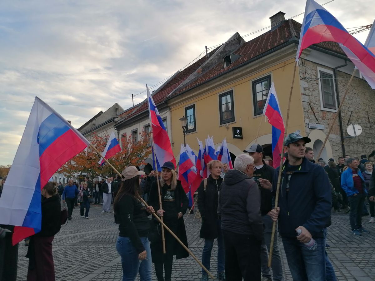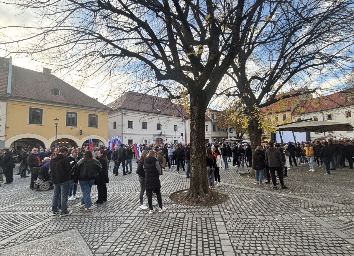 Množica ljudi v središču Novega mesta - vladi žvižgi, županom aplavz