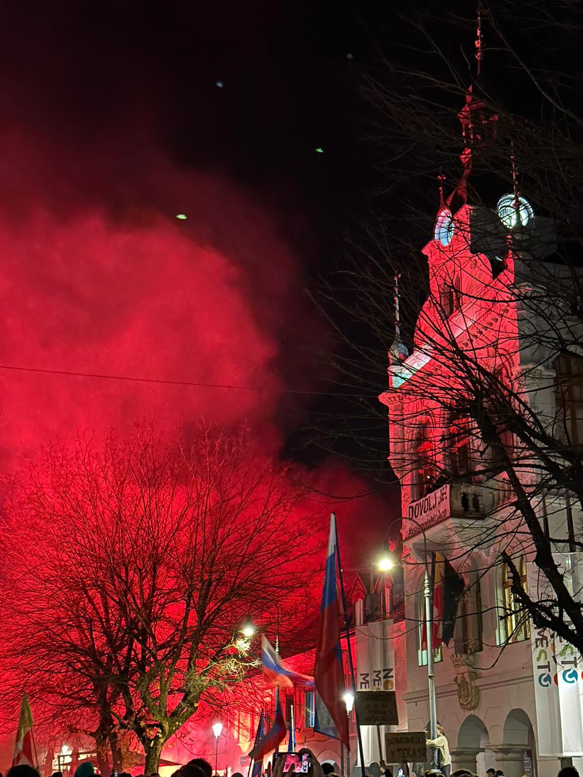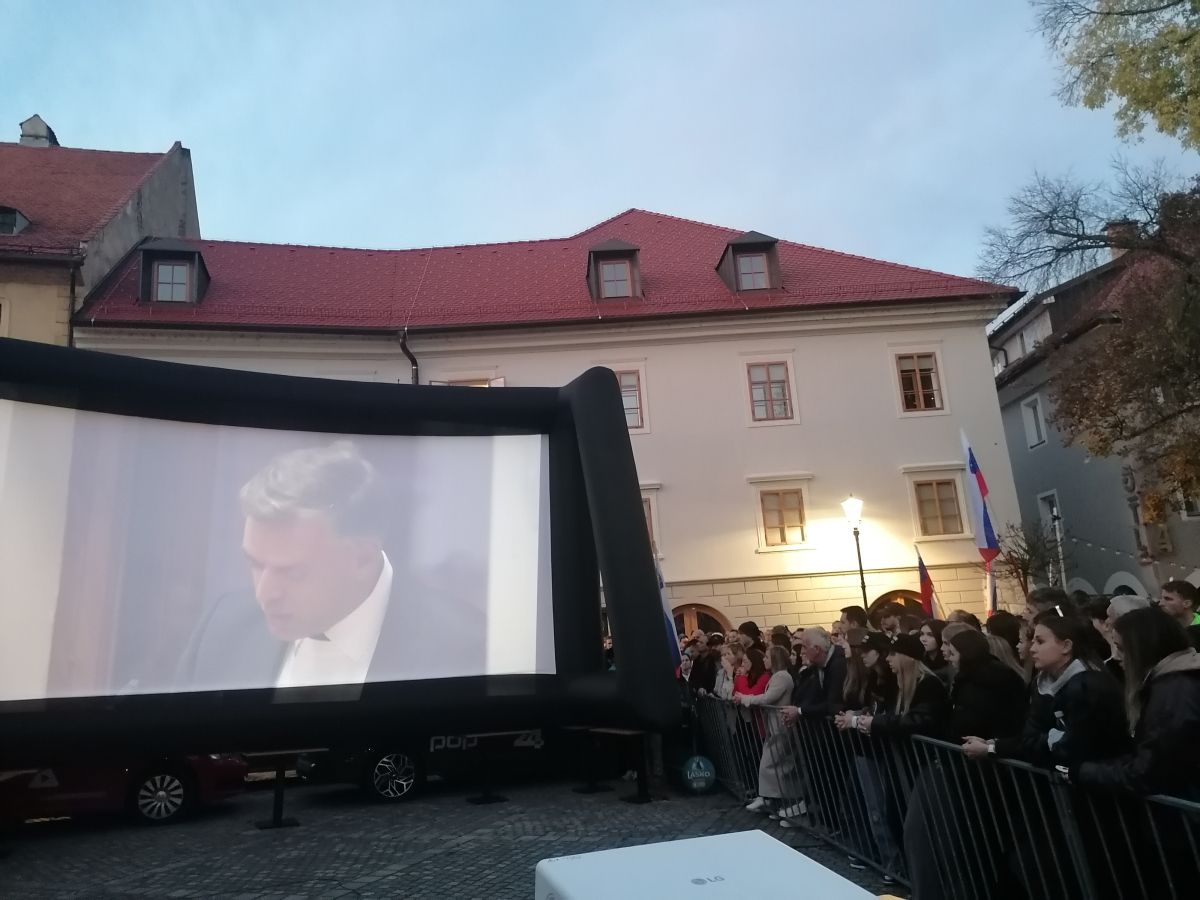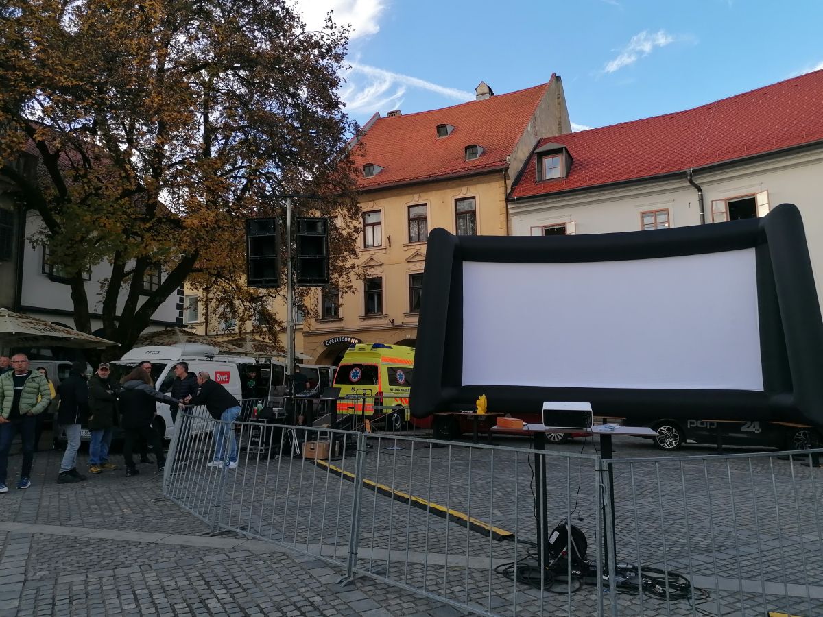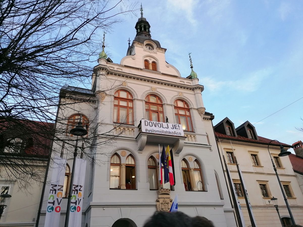 Pred novomeško občino se je zbrala velika množica ljudi, ki spremlja izredno sejo občinskega sveta.