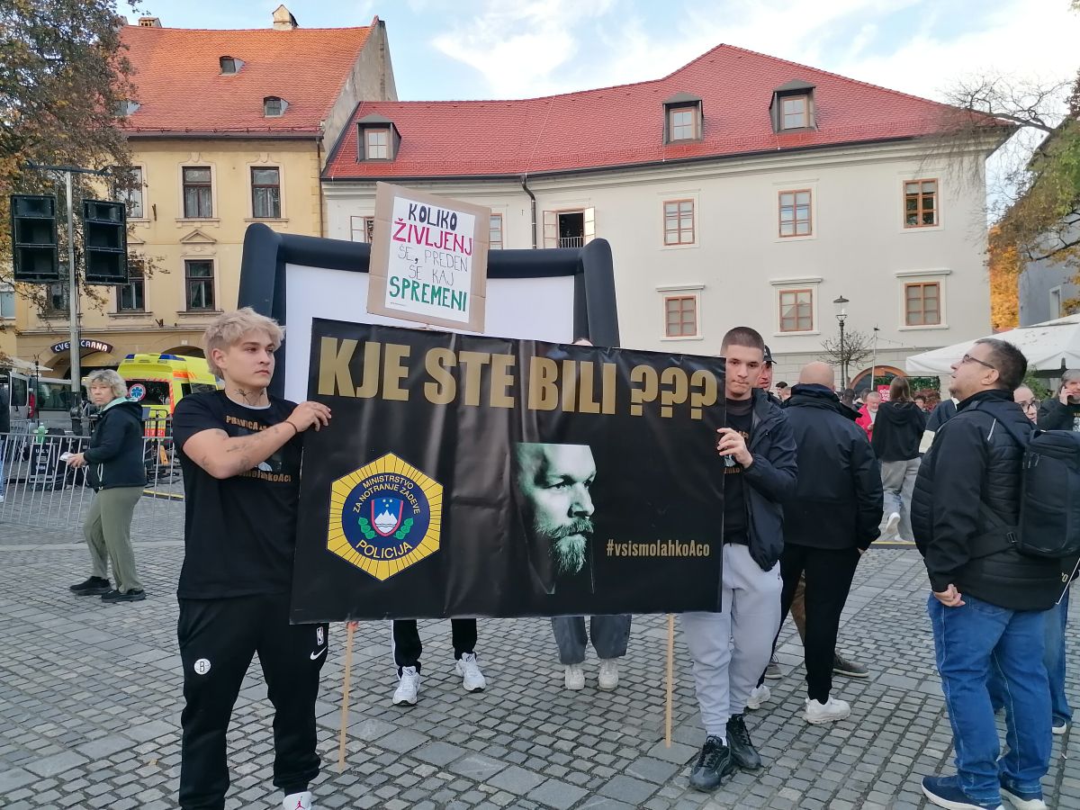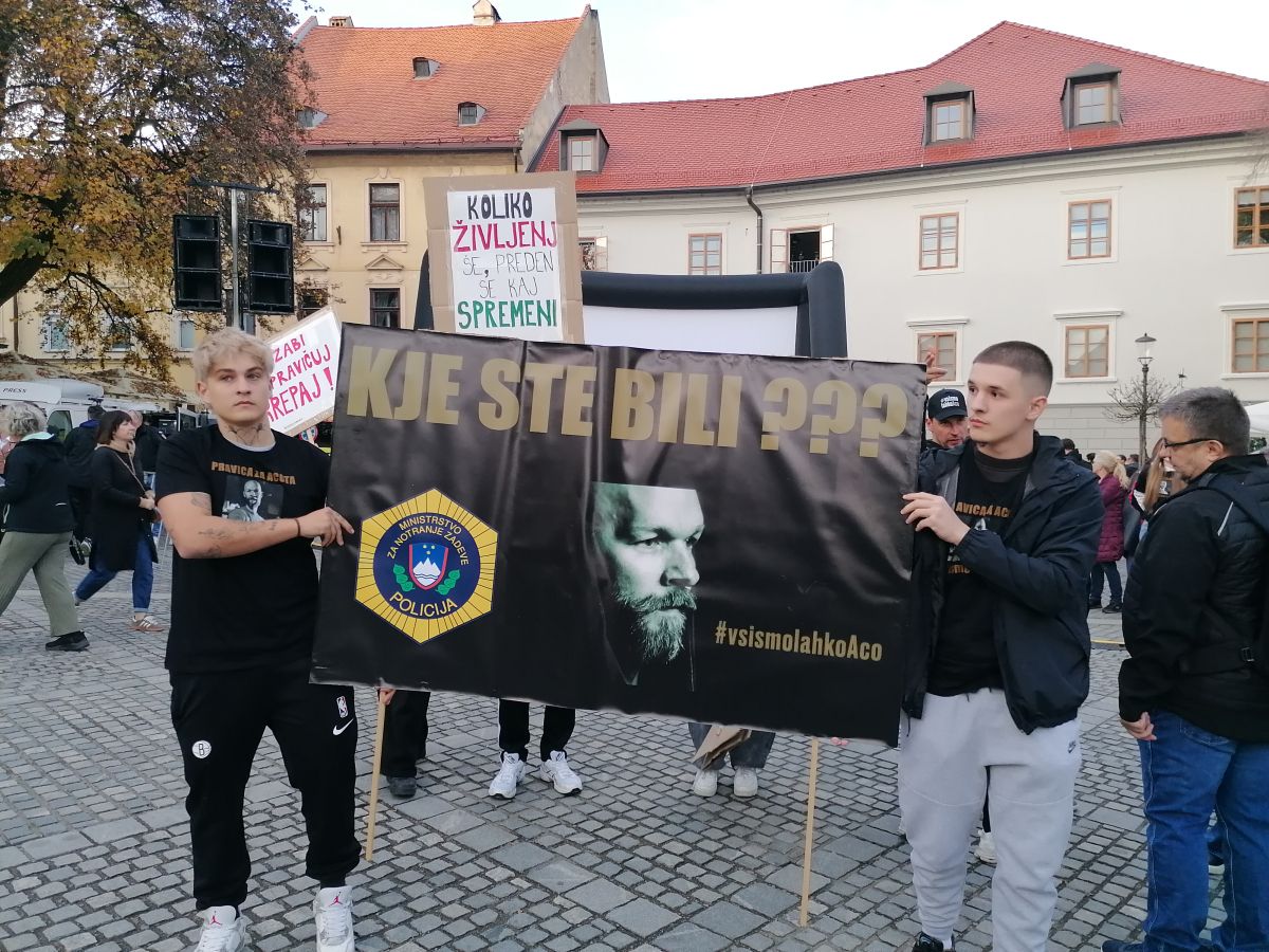 Mnogi ljudje so oblečeni v črno, nosijo majice in kape z napisi Pravica za Acota, kot so klicali umrlega, ter #VsismolahkoAco. S transparenti sporočajo, da njegova smrt ne sme biti zaman in še: Če te to ne razjezi, nisi dovolj pozoren ter Dovolj je bilo!
