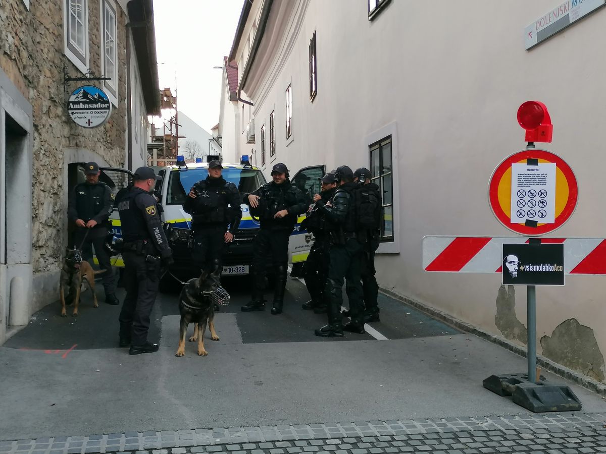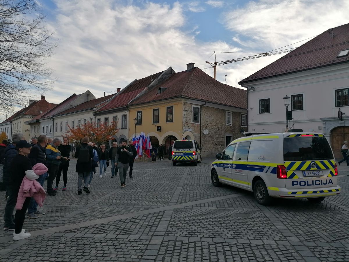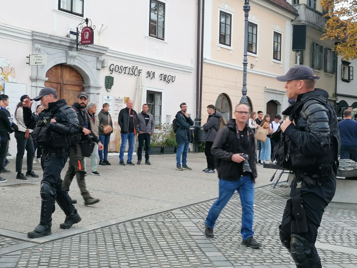 Na vseh vstopih na Glavni trg je opaziti policijske kombije, med policisti je tudi veliko pripadnikov posebnih enot.
