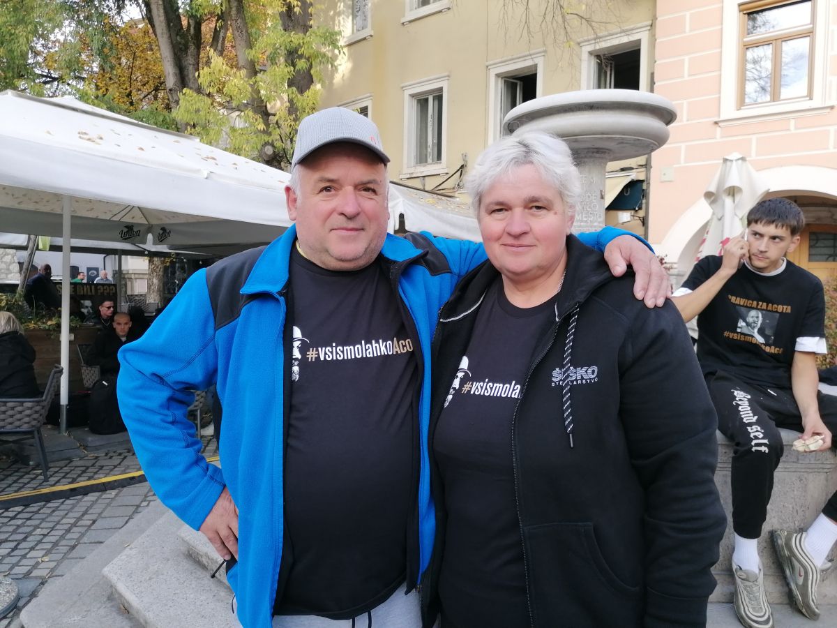 V Novo mesto izraze podpore prihajajo izkazovat tudi iz drugih krajev Slovenije, denimo Darko Blatnik iz Krškega, ki je na Glavni trg prišel z ženo.