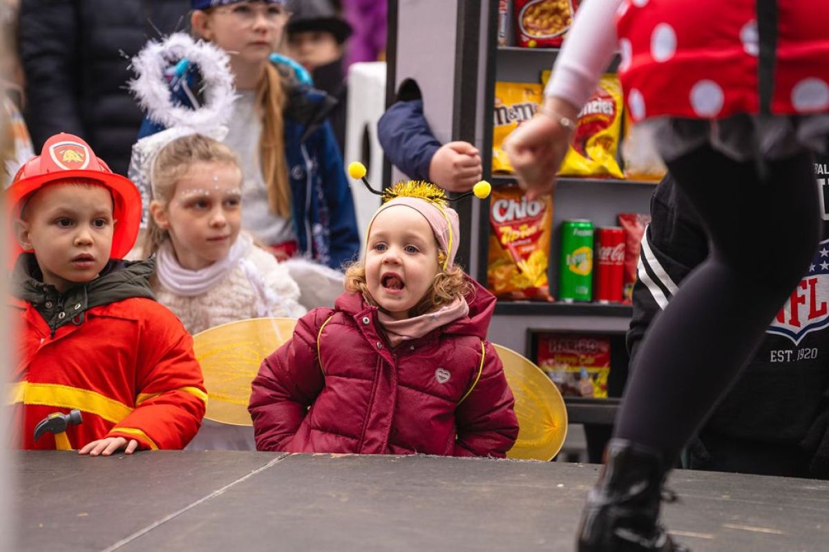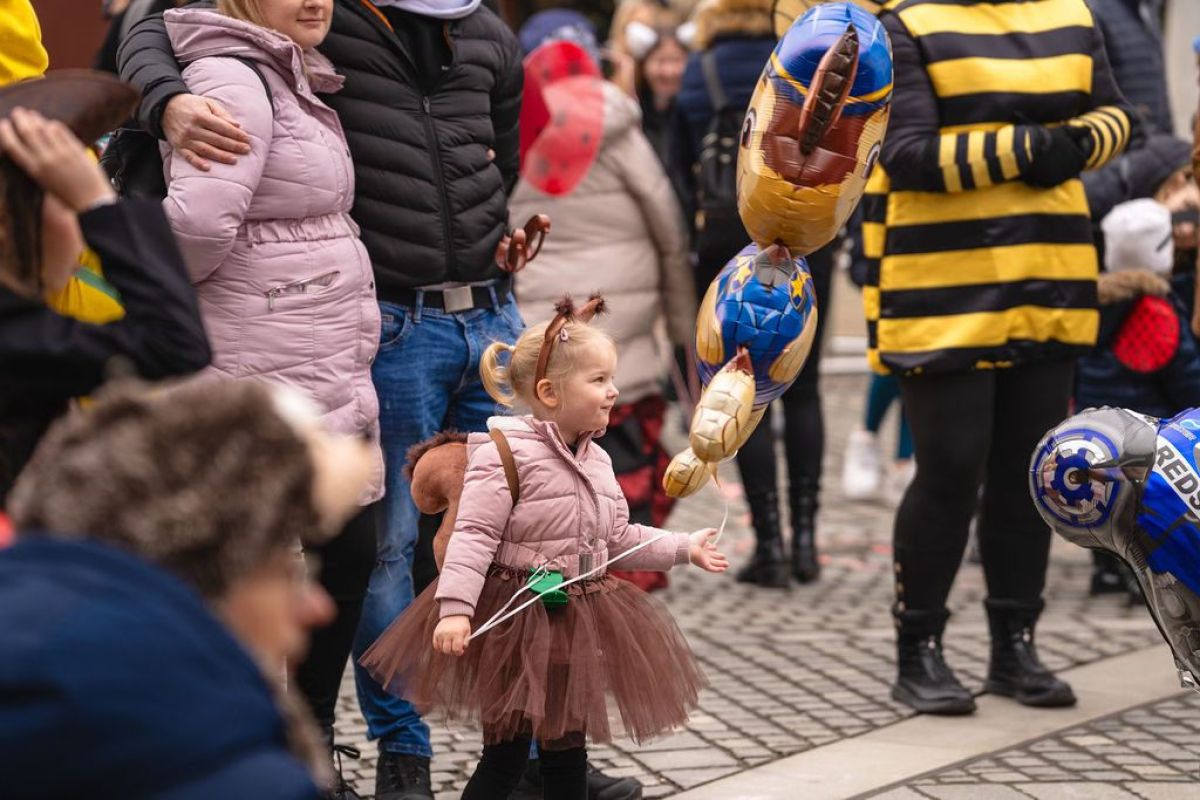Pustno soboto so otvorili s pustno povorko z Novomeškimi mažoretami in Mestno godbo Novo mesto, ki se je z zbirališča na Loki vila na Glavni trg. Tam je sledil animacijski program s Plesnim studiem Novo mesto, vsaka maska pa je prejela tudi sladko presenečenje, za kar je poskrbelo TKD Trškogorsko srce.