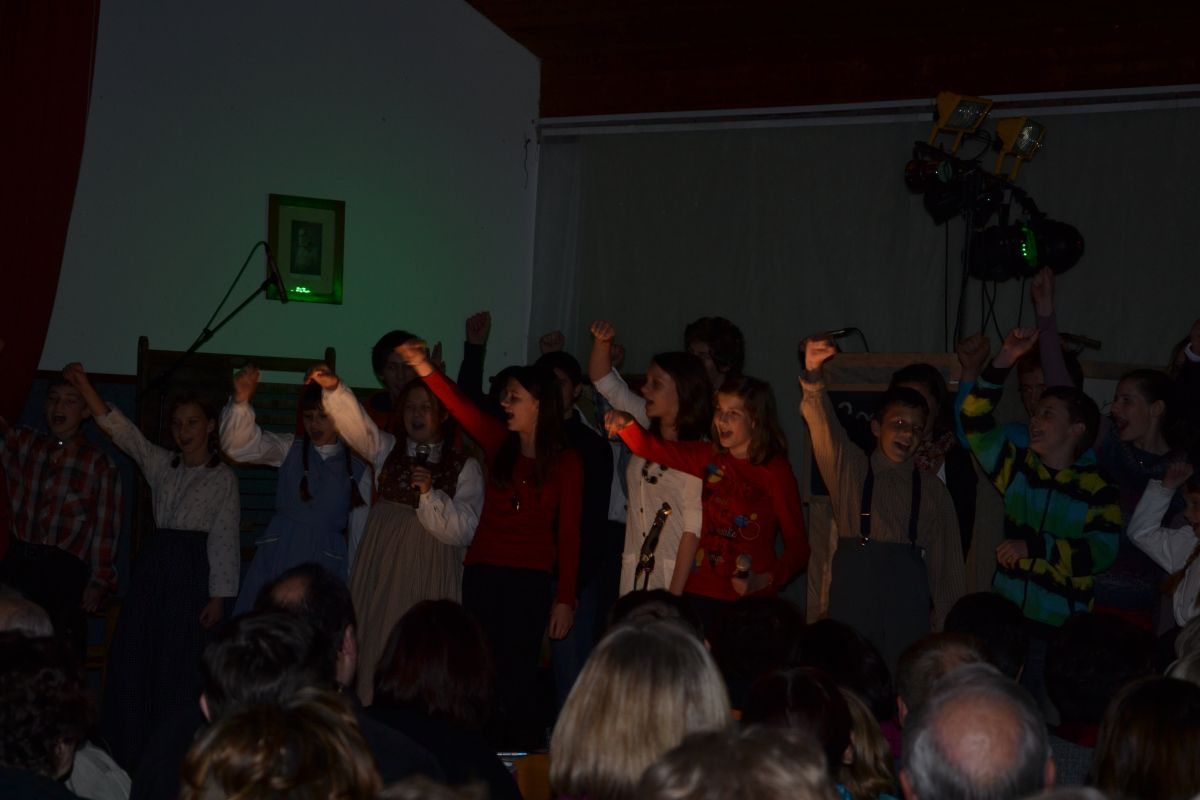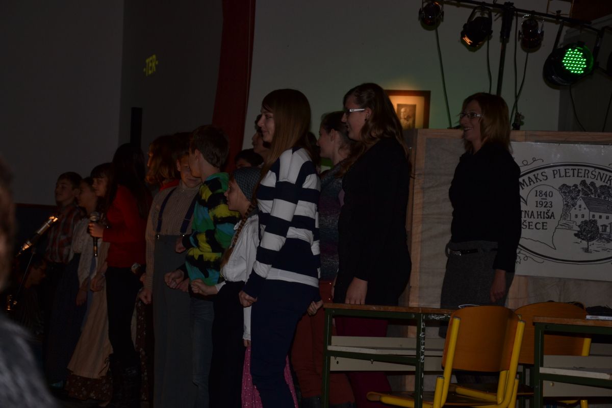 Slovesnost smo zaključili z MULTIMEDIJSKO PREDSTAVO v kulturnem domu Pišece s stilizirano učno uro zgodovine šolstva v Pišecah. Dogajanje na odru smo popestrili z igranimi vložki, intervjujem, posnetimi citati iz kronike, petjem ter glasbenimi točkami.