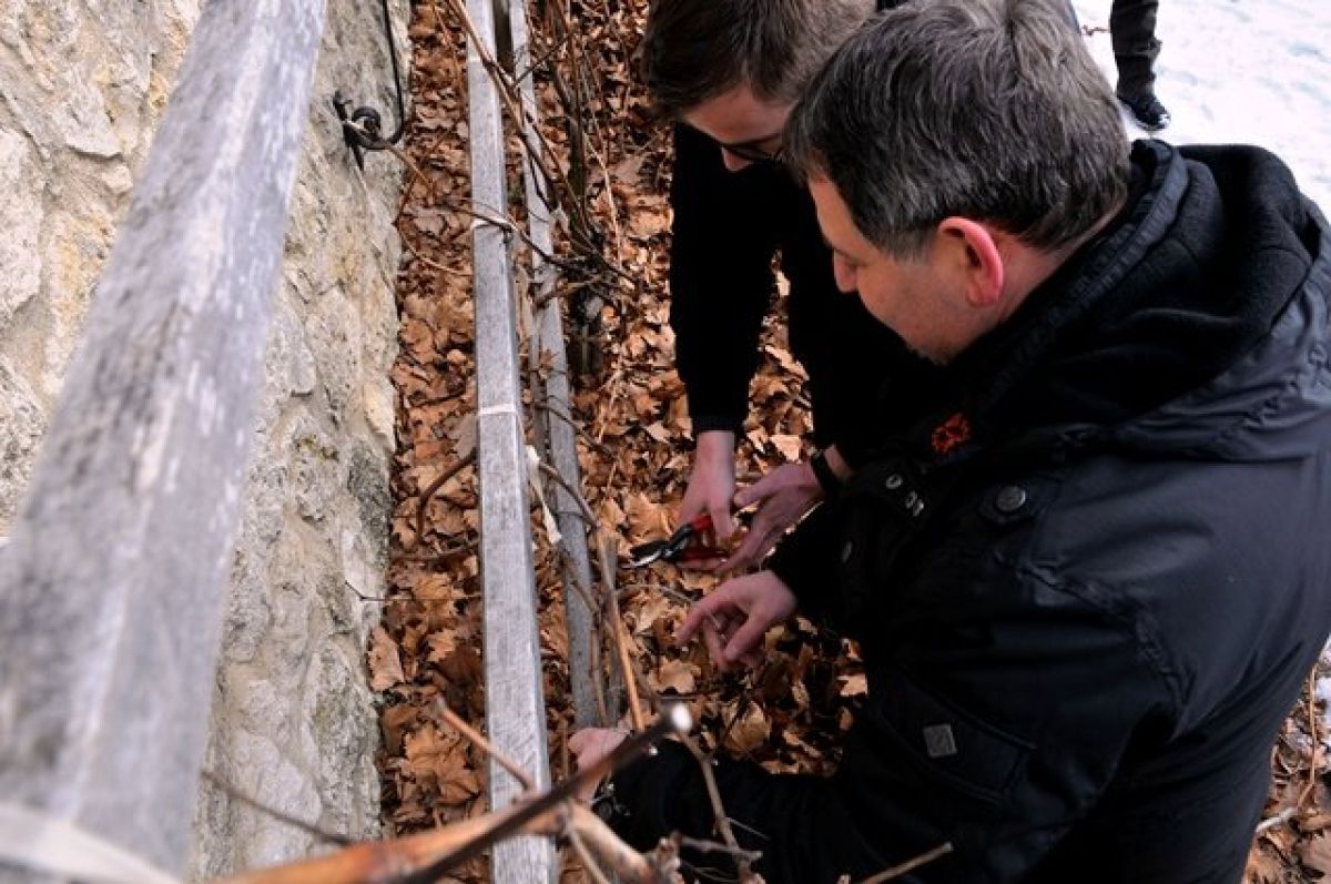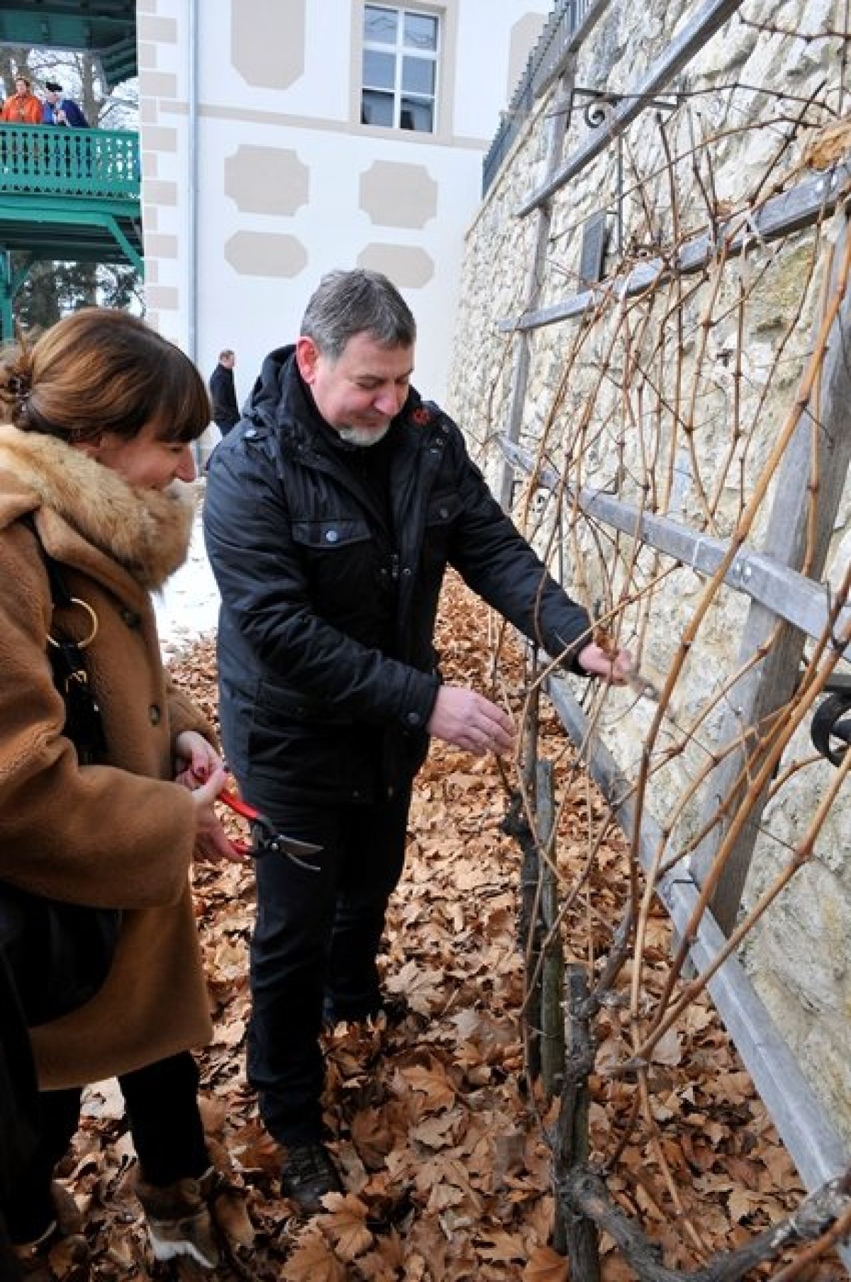 V grajskem vinogradu Gradu Sevnica smo se letos ravno na dan sv. Vincenca lotili prvega letošnjega vinogradniškega opravila - rezi grajskih trt modre frankinje. V organizaciji ekipe KŠTM Sevnica je tako ob godu Sv. Vincenca, 22. januarja, ko se po starih običajih lahko začnejo opravila v vinogradu, potekala že 9. tradicionalna Grajska rez. Kljub hladnemu vremenu je privabila lepo število botrc in botrov ter ostalih podpornikov, več kot 150 se nas je zbralo, k čemur je zagotovo prispevala tudi večja medijska promocija Sevnice v zadnjem času. Že ob prihodu na grad so vse prihajajoče v grajski opravi pozdravili in k vinogradu usmerili člani društva Sevniški graščaki, z medenim aperitivom pa je številne zadržal in postregel čebelar Franc Zagorc. Pri grajski vili nad vinogradom, kjer je goste pričakal prigrizek in okrepčilo, je zbrane po glasbenem uvodu znanega dua Batista Cadillac, finalistov priljubljene oddaje Slovenije ima talent, uvodoma pozdravil župan Občine Sevnica g. Srečko Ocvirk. V čast Prvi dami ZDA Melanii Trump je baron Moscon s sabljo odprl prvo Grajsko penino in skupaj smo nazdravili naši svetovno najbolj prepoznavni nekdanji krajanki. Mladi vinar David Kozinc je predstavil prvo Grajsko penino rose, polsuho peneče vino letnika 2014. Nato je napočil čas za resno delo. V programu, ki ga je kot običajno spretno povezoval Ciril Dolinšek - Cili, smo skupaj s predstavnikoma Ljubljanskega gradu Markom Brunskoletom in Simono Kokalj obrezali cepič najstarejše vinske trte z Lenta, ki raste ob kamnitem zidu ob grajskem vinogradu. Član DV Sevnica – Boštanj Aleš Germovšek je izvedel praktični prikaz rezi vinske trte modre frankinje, tako da so se tudi manj vešči botri podučili, kako se reže trta, in to znanje uporabili pri rezatvi svojih trt. Po dobro opravljenem delu je sledilo le še povabilo na okusno kosilo, ki ga je ekipa Hiša vin Kamenško pripravila na toplem v gradu, kjer je direktorica KŠTM Sevnica Mojca Pernovšek predstavila novi blagovni znamki Sevnice – »Visit Sevnica« in »First Lady« ter prenovljene prostore sprejemnice in prodajalne v gradu. Vsak boter je ob odhodu prejel tudi darilo – prvo Grajsko penino!