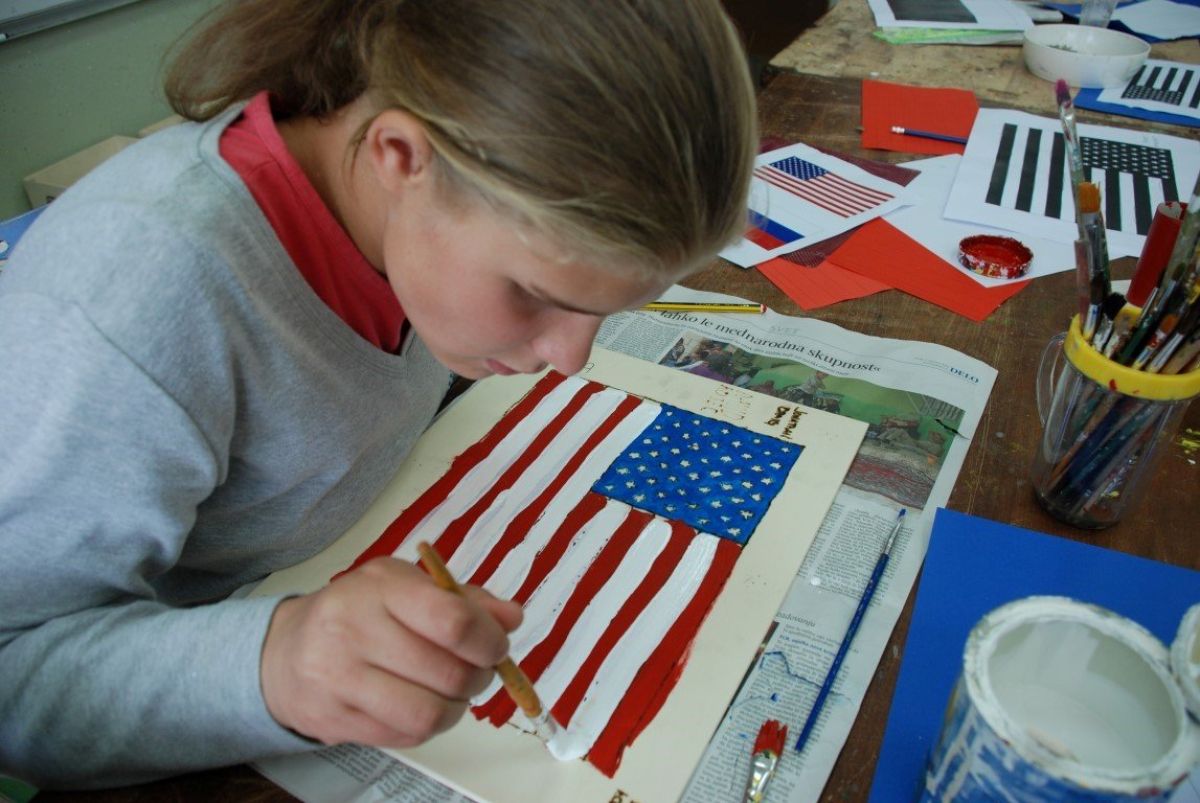 Učenci in vojaki so izdelovali ameriške in slovenske zastave. Trgali so kolaž in ga lepili na karton. Na leseno ploščo so prerisali zastavo, jo izžgali s pirografom in na koncu pobarvali. Pred šolo so izdelovali mozaik iz keramičnih ploščic, pri čemer so bili naši učenci spretnejši od marincev in vojakov.