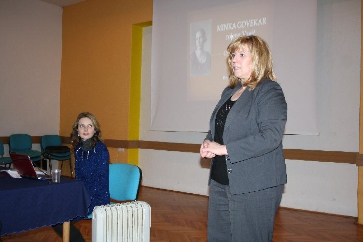 Mlada diplomirana etnologinja in kulturna antropologinja Ana Vrhovec je včeraj zvečer na povabilo ženskega odbora SDS Trebnje v Baragovi dvorani predstavila delo in vpliv na družbeno dogajanje Minke Govekar, ki se je rodila leta 1874 v družini Vasič v Trebnjem. Njen oče Ljudevit je bil zdravnik, mama Marija pa gospodinja.