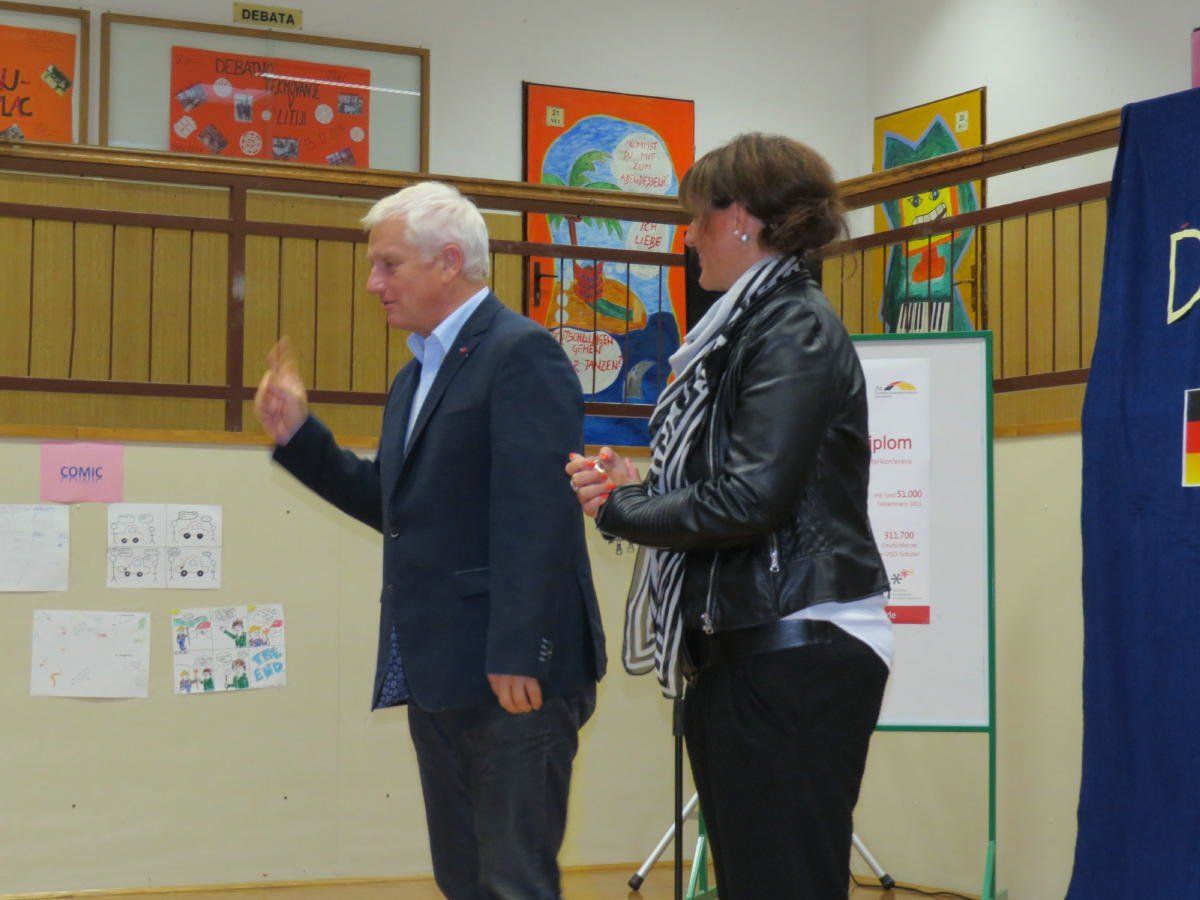 Diplome je 16 dijakom 4. letnika gimnazije, ki so izpite opravili konec lanskega šolskega leta, podelil koordinator za program DSD v Sloveniji dr. Reinhard Zühlke. Prisotne pa je poleg ravnateljice Srednje šole Črnomelj Elizabete Prus in koordinatorke za program nemške jezikovne diplome Alexandre Kočevar pozdravila tudi vodja kulturnega oddelka na nemškem veleposlaništvu v Ljubljani Lena Handwerk.