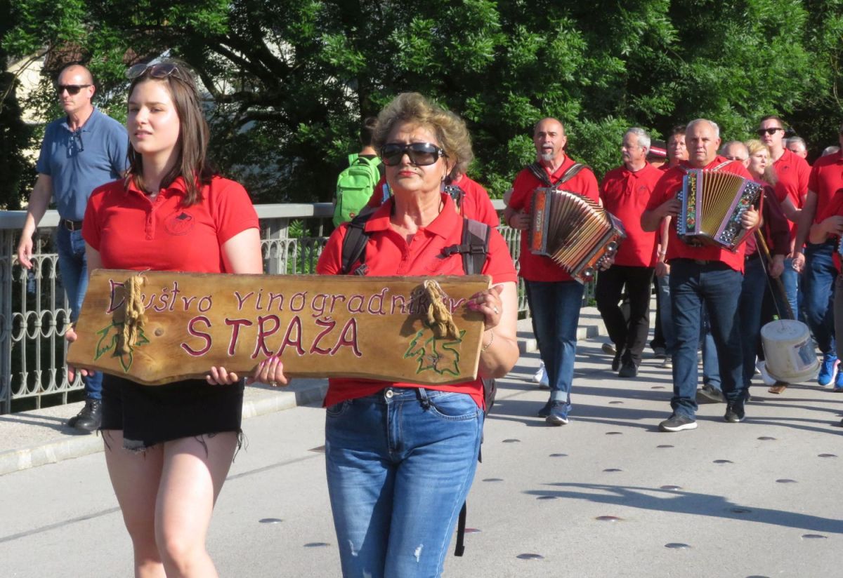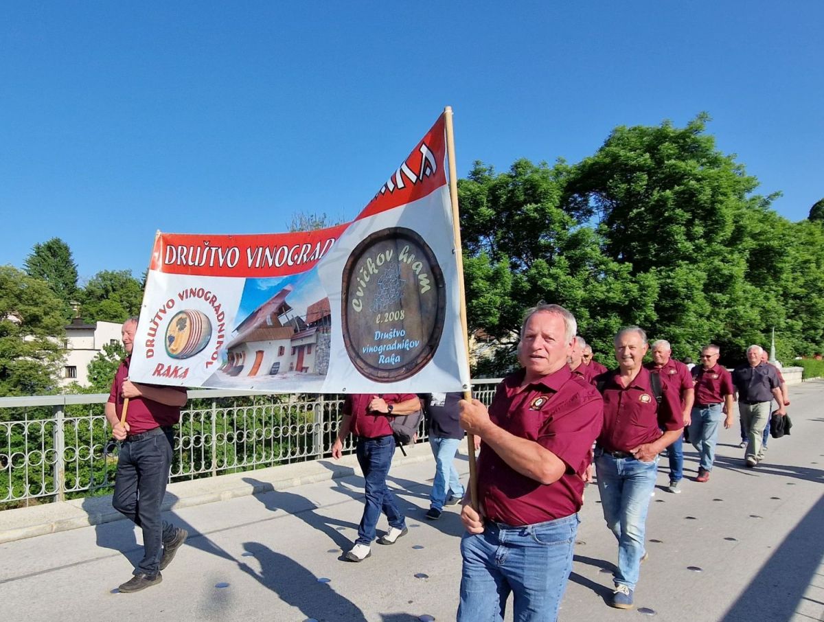 Preko tisoč vinogradnikov se je podalo drug za drugim preko Kandijskega mostu v mesto – najprej konjeniki z zastavami, nato praporščaki vinogradniških društev, novomeške mažorete, nato pa vinogradniki v najrazličnejših enotnih društvenih opravah, večina s harmonikarji in kitarami, s pletenkami v rokah, gospodinje s kakimi štrukeljčki …, pa vmes godbeniki iz Novega mesta, Šentjerneja in Kostanjevice idr. Veliko je bilo mladih udeležencev povorke, kar še posebej veseli.