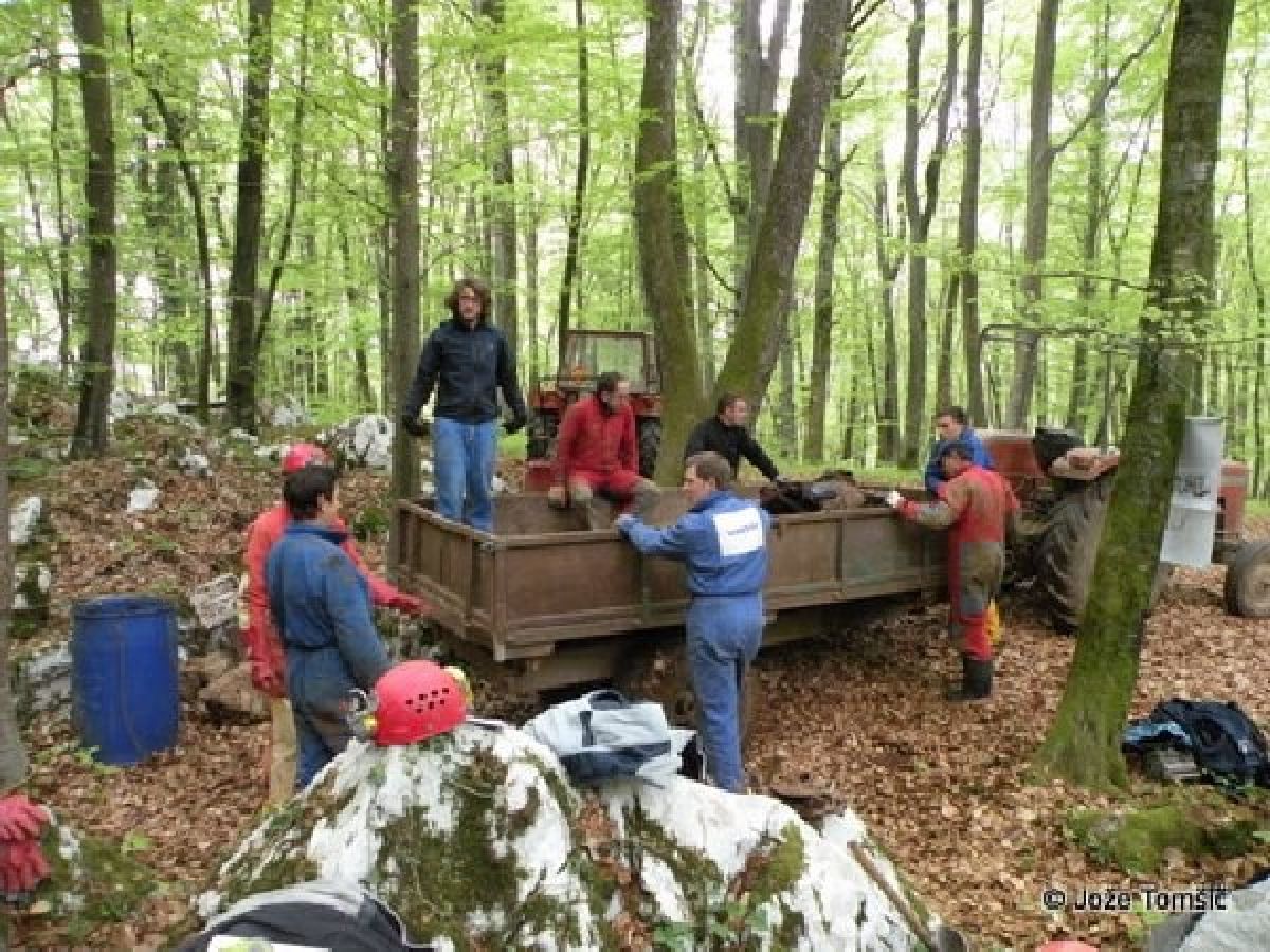- poleg jame Grč vrh 3 smo očistili še jamo z delovnim imenom Grč vrh 2, ki leži v neposredni bližini, trenutno je zaprta s podorom, počakali bomo zimo, da vidimo, če po predihalo podor,