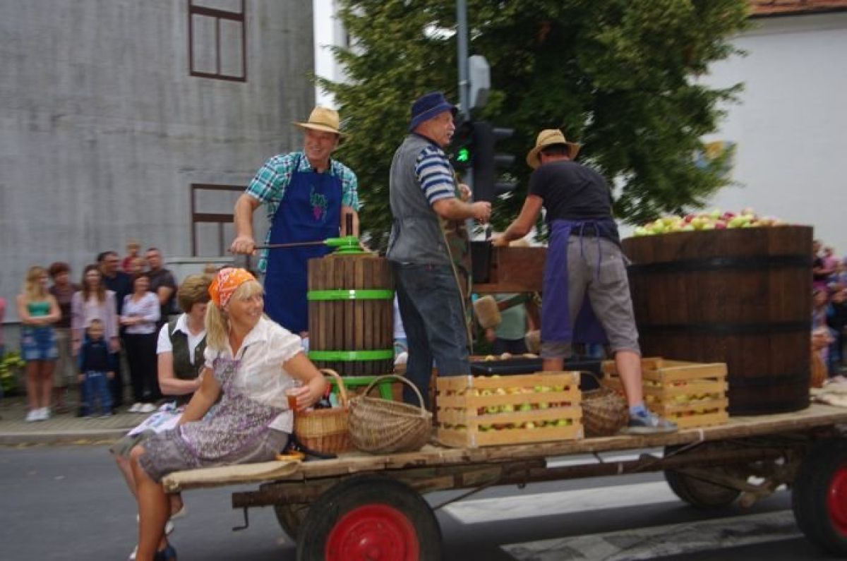 Tako je bilo v povorki, ki se je podala od hipodroma skozi Šentjernej, in je štela okrog tisoč udeležencev iz preko 50 društev, videti tudi prikaz pridelave jabolčnika, pa žganjekuhe in kak obiskovalec je celo lahko poskusil šilce žganja. Seveda je na čelu povorke koraka petelin Jernej, šentjernejska maskota, za njim so šli glasbeniki Pihalnega orkestra občine Šentjernej, pa gostje in častni občani na zapravljivčkih, ter predstavniki številnih društev v občini Šentjernej, ki bogatijo družabno življenje.