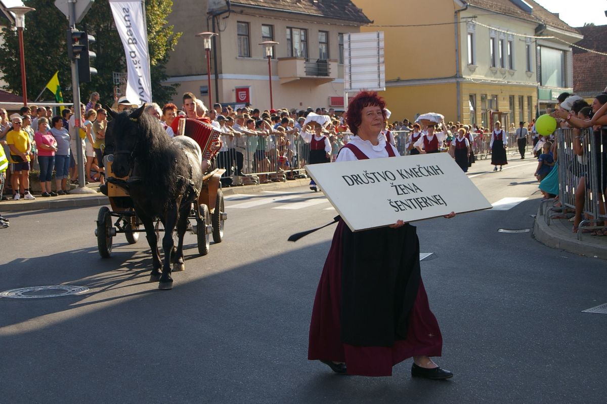 Nato so se zvrstili vinogradniki, ki so predstavili tudi pripomočke in strojno mehanizacijo za delo v vinogradu, pa gasilci z voznim parkom. Skozi Šentjernej so se sprehodili kulturniki, od pevcev do godbenikov iz Šentjerneja in Kostanjevice, športniki, vinogradniki, upokojenci, lovci, čebelarji, konjeniki, člani turističnih društev, RK, društva ljubiteljev praženega krompirja, … Zahrumeli so motoristi, videti je bilo stare avtomobile,… Vse udeležence je z balkona Majzlove gostilne humorno predstavljal Janez Selak.