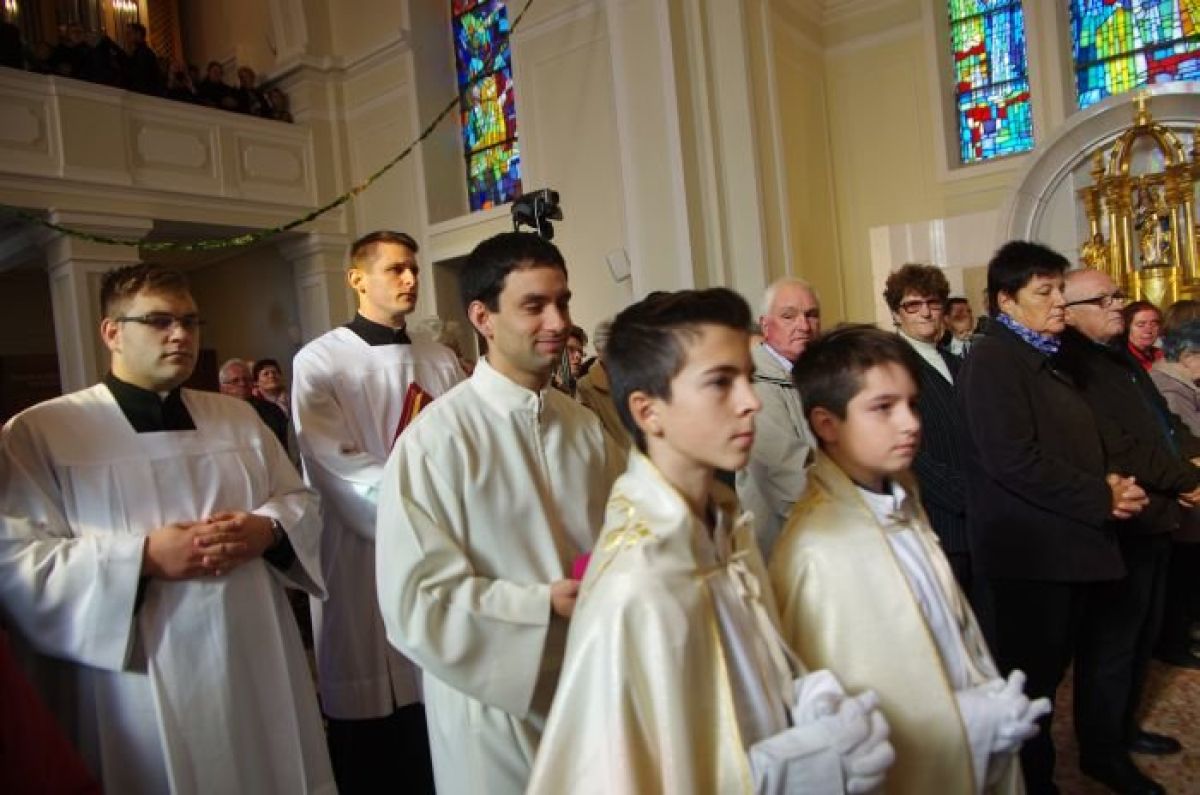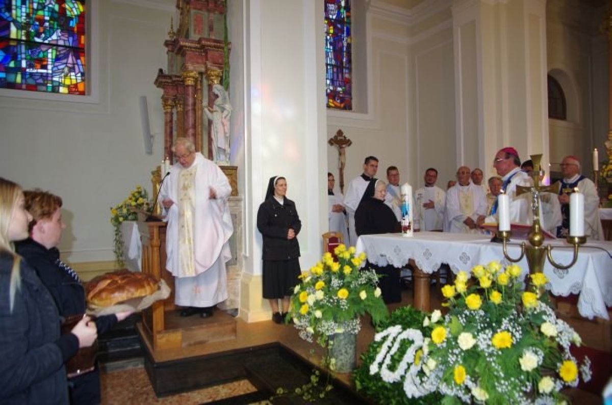 Somaševanje je v spremstvu mnogih škofov in duhovnikov vodil apostolski nuncij v Sloveniji msgr. Juliusz Janusz, ki je ob začetku sv. maše blagoslovil novo barvno okno na pročelju cerkve-jubilantke, delo umetnika Marka Jermana. Financiral ga je donator.