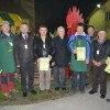Ker je zvon vaške cerkve pred kratkim dobil novo bakreno preobleko, je bila nocojšnja prireditev tudi priložnost, da so se Grobeljčani zahvalili najbolj zaslužnim za to pridobitev: priznanja so dobili podjetnika Jani Kovačič in Sandi Tršinar ter župnik Anton Trpin in domačin Marko Strojin.