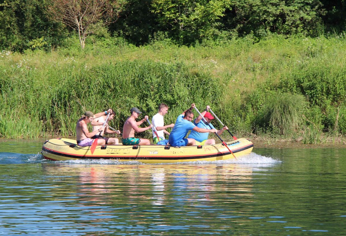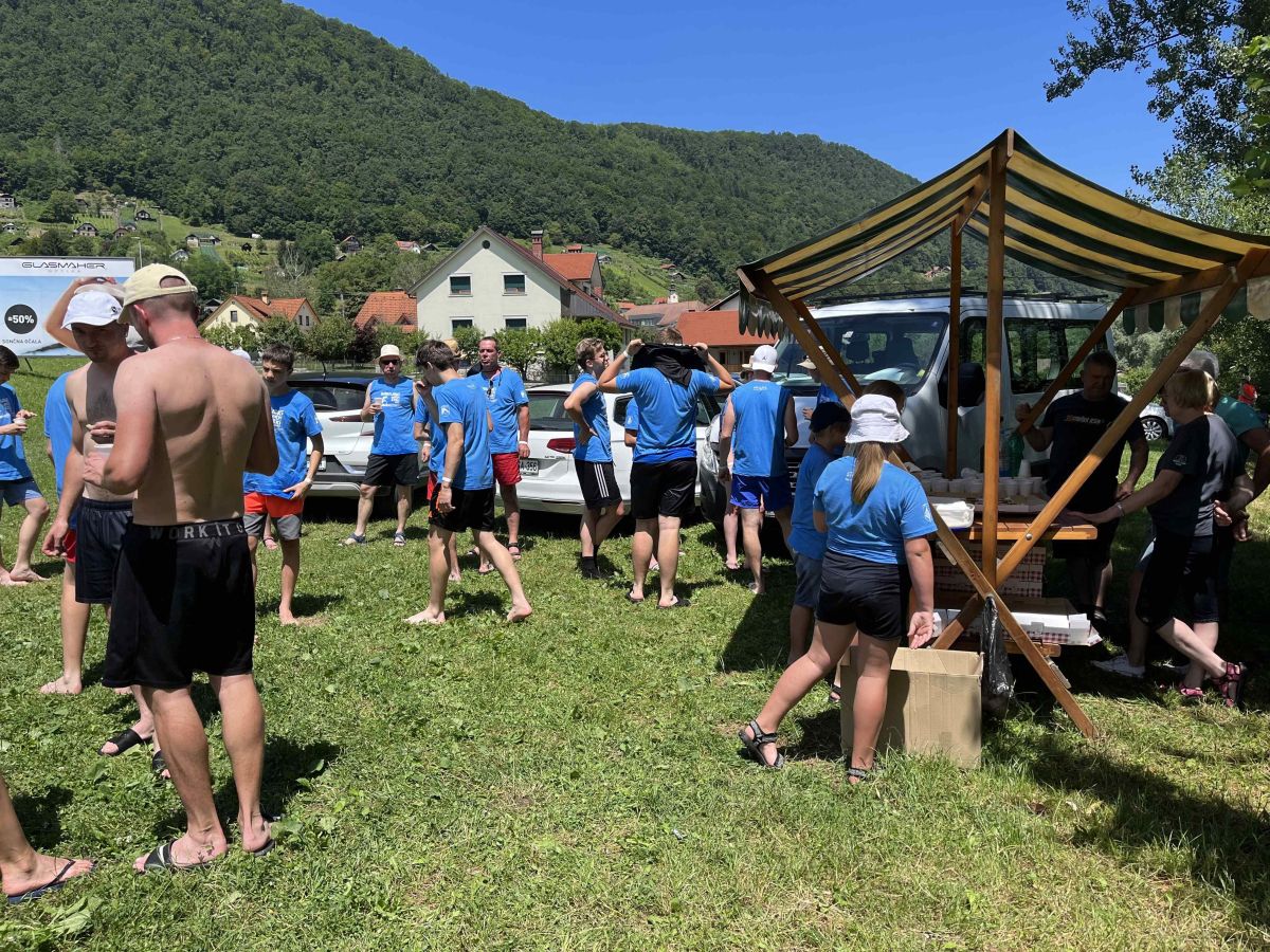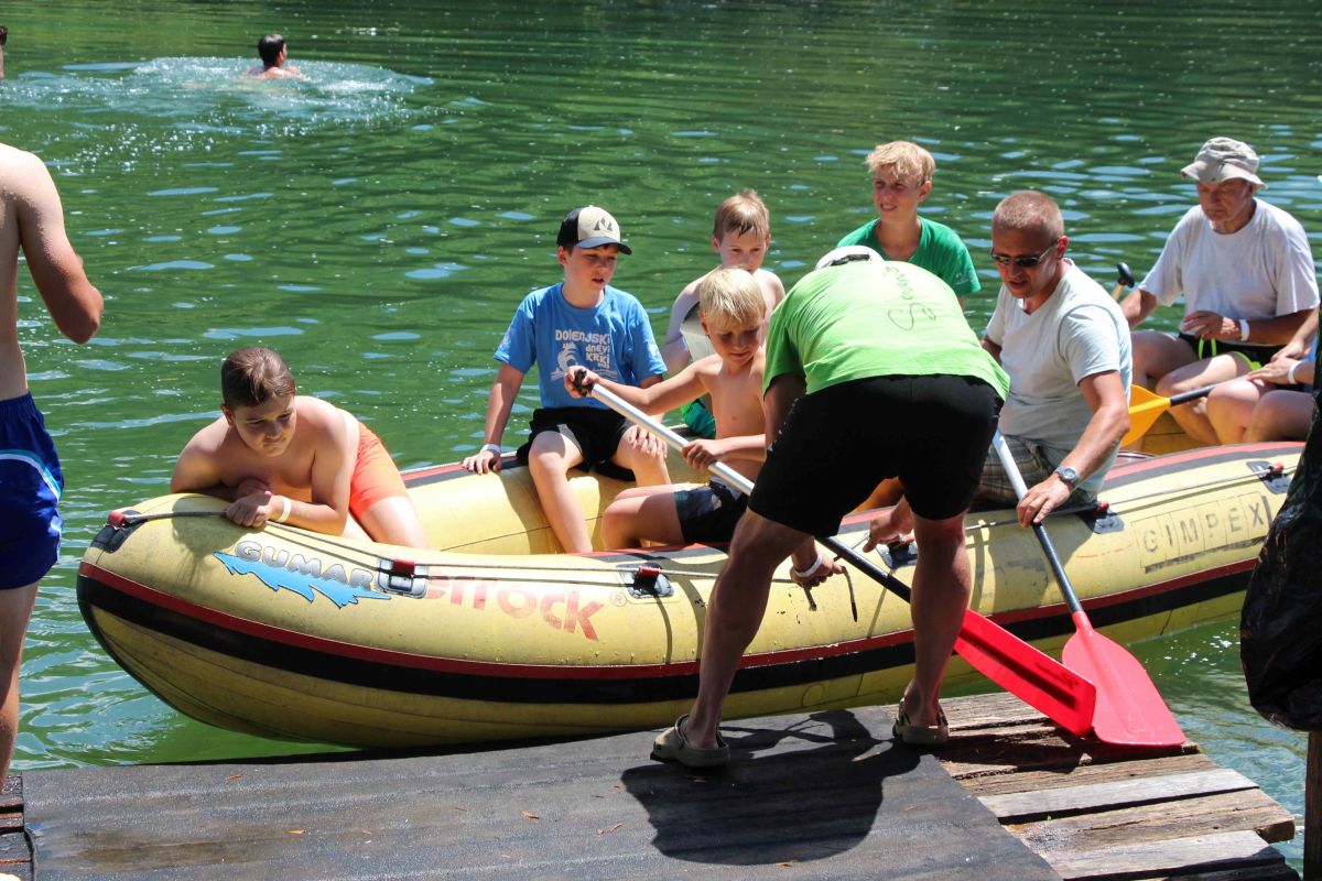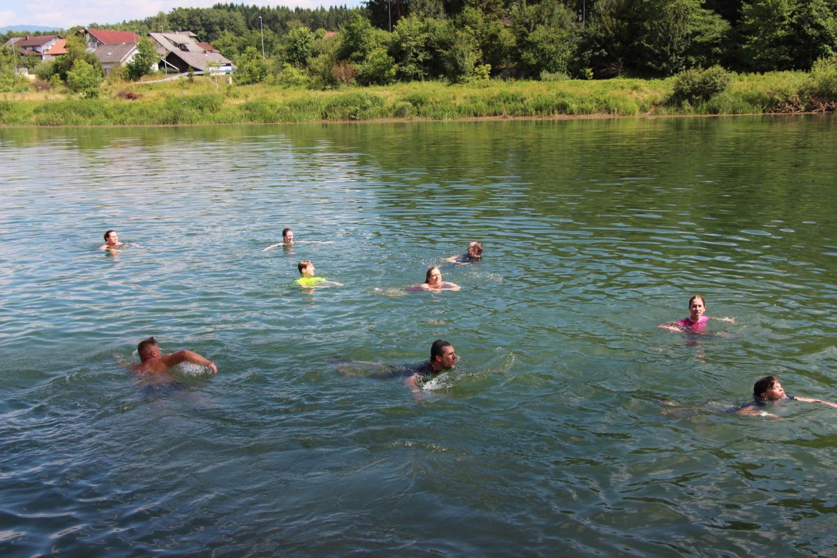 Na cilju v Zalogu je kot vedno sledilo še druženje vseh udeležencev z živo glasbo in zabavnimi igrami. Letos je bila le ena, a ta toliko bolj razburljiva. Dvanajst ekip iz vseh štirih občin se je pomerilo z rafti na izpadanje, najhitreje pa so po Krki zaveslala ekipa Jurke vasi, ki je zmagala tudi lani in ponovno v svoje roke vzela prehodni pokal.